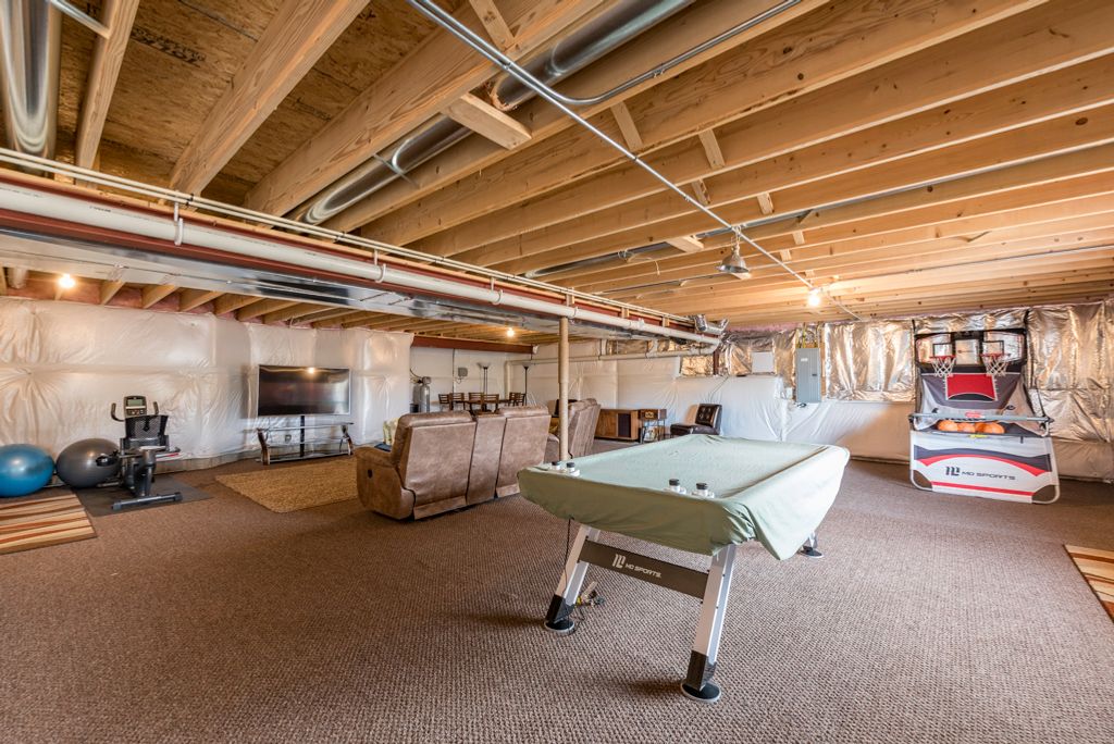 Welcome to Liberty Trails! This stunning 2022-built Palmer Model by Gerstad offers the perfect blend of modern design, thoughtful upgrades, and move-in-ready convenience. This ranch-style home with walk-out basement features 3 bedrooms, 2.5 baths, and 2,107 square feet of beautifully designed open-concept living space. The expansive kitchen is the heart of the home, showcasing stainless steel appliances, granite countertops, cream shaker-style cabinetry, luxury vinyl tile flooring with a slate look, a massive island with stylish pendant lighting, and newer custom window treatments throughout - all included! The open floor plan flows seamlessly into the living area, foyer, and down the hall with consistent slate tile flooring for a clean, cohesive look. The spacious primary suite offers a relaxing retreat with a soaker tub, separate shower, dual vanities, and generous space. Bedrooms 2 and 3 are both nicely sized, with Bedroom 3 featuring a walk-in closet. The second full bath is oversized and thoughtfully designed. Convenient main-floor laundry includes washer, dryer (with approximately 10 months remaining on warranty for dryer), and cabinet with utility sink. The full walk-out basement is partially finished with carpet and insulation already in place, additional electrical outlets installed, sliding doors to the patio, and plumbing stubbed for a future 4th bathroom - ready for your finishing touches. The sellers have invested significantly in upgrades, including: * Upgraded furnace (replaced original builder grade furnace) * New water softener * New security screen door * New ceiling fans in all bedrooms and living room * Built-in irrigation system (installed 2025) * $4,000 in professional landscaping * $4,000 invested in three new trees * Gas line for outdoor grill The 2.5-car attached garage includes an extra refrigerator and offers great storage space. Backyard is partially fenced and ideal for entertaining or relaxing. This home truly shows pride of ownership and feels better than new - without the wait to build. Don't wait! Come see today!