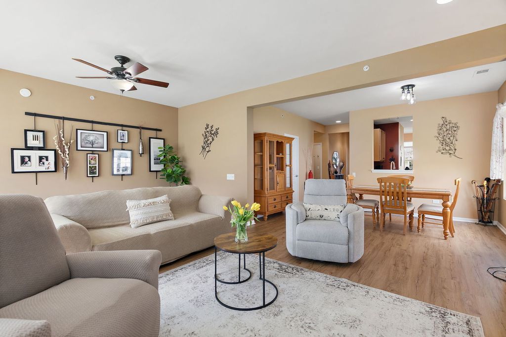 Welcome to this beautifully designed James model located on a cul-de-sac in Huntley's premier 55+ community. This thoughtfully laid-out home features 2 spacious bedrooms and 2 full bathrooms. The primary suite includes a bay window that fills the room with natural light and an en-suite featuring a convenient step in shower with 2 benches. The guest bedroom is perfectly situated next to a second full bathroom. The open-concept design creates a seamless flow throughout the home, anchored by a versatile great room & dining room offers endless possibilities for furniture layout and entertaining. The kitchen features maple cabinets, black appliances and a breakfast nook with large window and pantry closet. The newer, easy care LVT flooring through the main living areas adds to the adorable charm of this home. A laundry room with newer washer and dryer & utility cabinet leads to the 2-car garage. Enjoy the peaceful backyard on the patio. Some updated lighting, Samsung microwave. Original roof, HVAC and water heater. Enjoy a of variety clubs and activities, 3 pools, tennis and pickleball, golf, bocce ball, walking trails, fishing, free out-door concerts. Close to shopping, restaurants, medical facilities and I-90. Come see this popular James model home today.