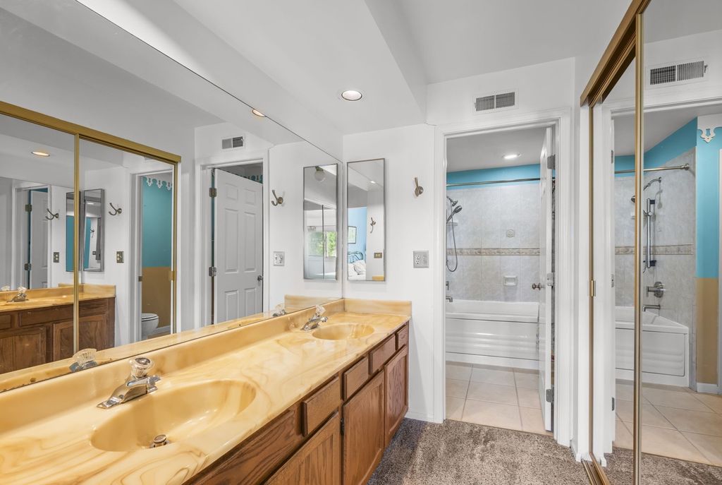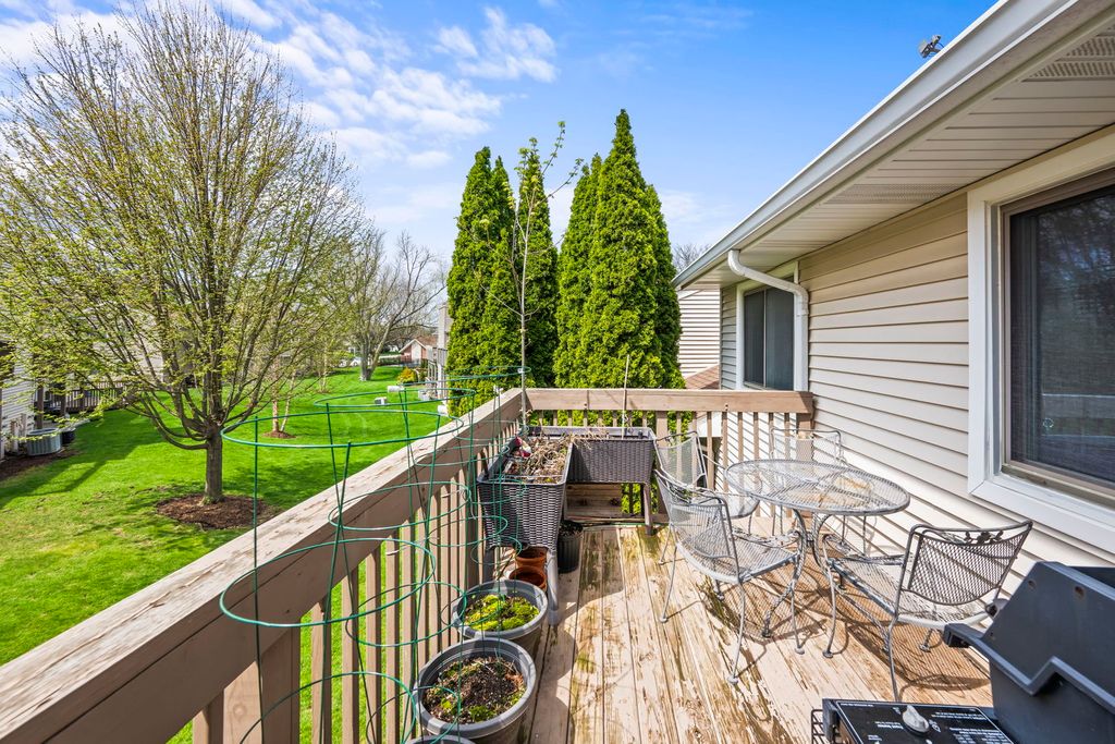 Incredible opportunity to own a lovely townhome with award-winning Stevenson HS in the highly sought after Hidden Lake neighborhood in Buffalo Grove! This rarely available model offers 3 bedrooms, 2 full baths, an attached garage plus it's own private entrance...WOW! What also makes this rare gem even more special is the beautiful vaulted ceilings with skylights. This adds to the open feel of the townhome plus the quiet and tranquility of no neighbors above. The lucky buyer will love that the spacious living/room dining room has a beautiful built-in wood burning fireplace, plus sliders leading to the oversized balcony. This awesome balcony is more like a deck as there is room for table/chairs, a garden, and even a grill! Chefs kitchen boasts high end stainless steel appliances including Bosch dishwasher, professional grade Kitchen Aid stove, and Maytag french door refrigerator. There are also solid oak cabinets that could easily be refinished to your preference of shades, a pantry, low maintenance Duraplank, wide-plank flooring, plus an eating area inside the kitchen. The primary suite includes two closets plus its own full bathroom with a double sink and an updated shower with heated jacuzzi tub. The other two bedrooms each have their own closets plus access to another full bath. For your added convenience, there is in-unit laundry with full size washer/dryer and an additional closet for storage. You will also be delighted to find the above-mentioned attached garage which has a full-size Kelvinator freezer included in the sale at no additional close. Ideally situated on a quiet, interior location on a cul-de-sac with plenty of parking spaces for guests. During warmer months, the lucky buyer can bask in the sun and take a swim in the refreshing, community outdoor pool. HOA covers water, sewer, and trash, helping to simplify your monthly expenses. Highly sought after District 102 and Stevenson HS, which is amongst the best high schools in the country! Amazing location near shopping, restaurants, parks, walking paths, fitness centers, swimming pools, expressway, Metra stations, fitness centers, the new Clove Town Center, and so much more! Better hurry, terrific townhomes with so much to offer don't last long!