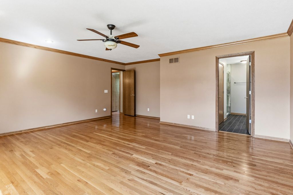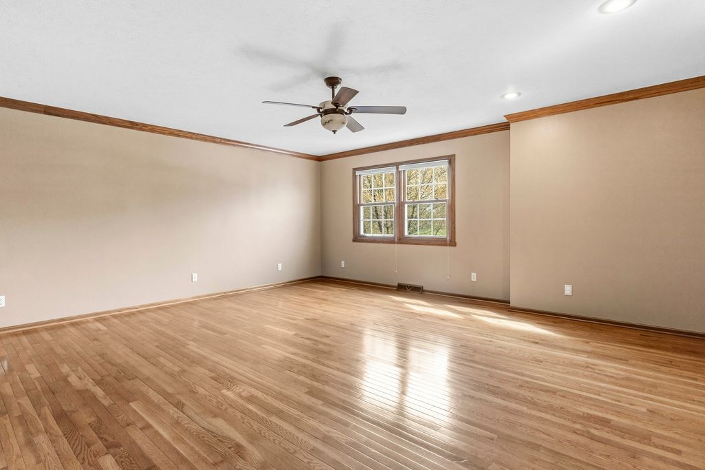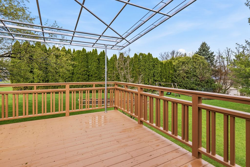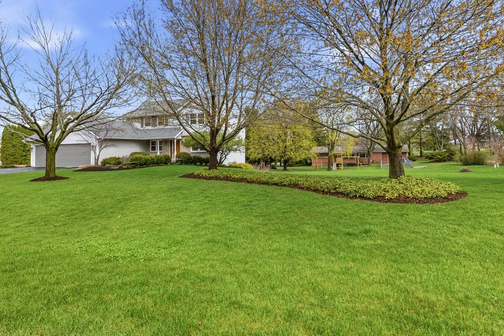 One owner, custom built home on almost an acre lot, full walk-out exposure on this meticulously maintained & updated 2-story. Remodeled kitchen with a Selin kitchen cherry cabinetry, tile floor, new lighting, backsplash, pantry with pullout shelving, 5 burner stove, all newer stainless steel appliances, and granite countertops. Spacious eating area with sliding door out to a large deck with awning cover. Many hardwood floors throughout the home. Family Room with fireplace. Main floor office. Living Room and Formal Dining Room with decorative columns. Huge Master Bedroom with your own bathroom with a granite countertop, tile floor, and walk-in shower. Benson Stone designed all the bathrooms. All bathrooms have custom built cabinet vanities. Fully exposed lower level with sliding doors out to a paver patio (wired for a hot tub), and a rec room. Many newer windows & doors. New epoxy garage floor. Security system. Newer water heater & softener. New roof 2024. First floor laundry. This is a move-in ready home in pristine condition.