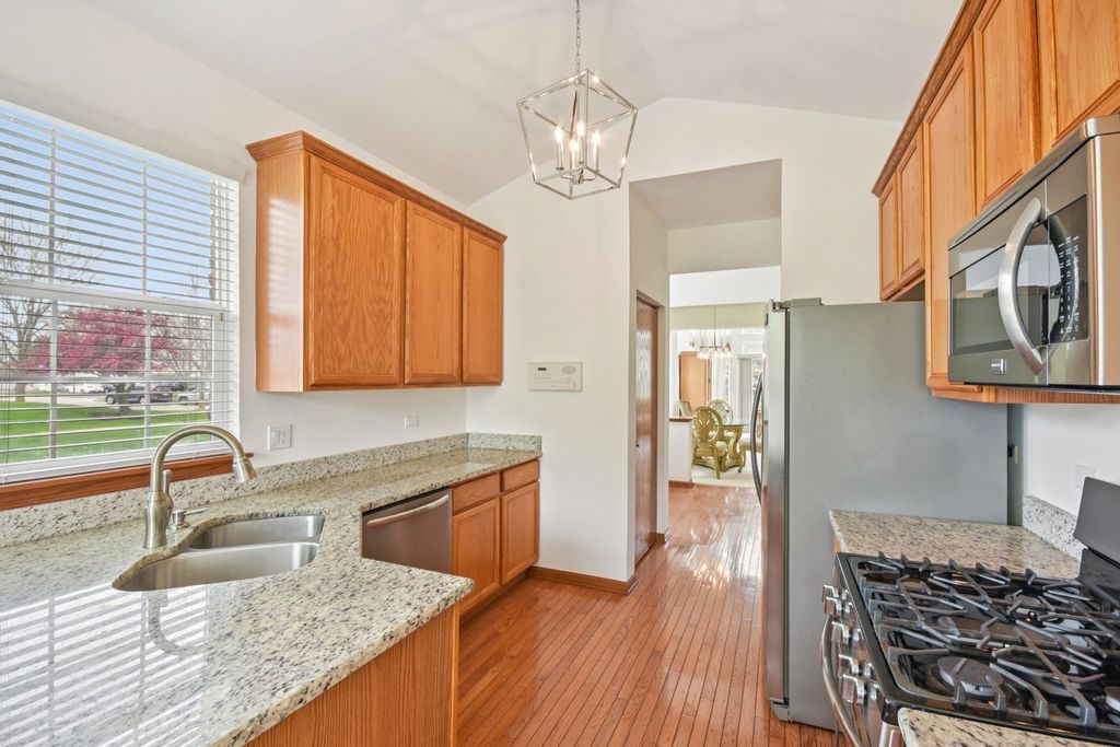 Welcome to a home that blends comfort, ease, and everyday livability-this freshly painted and beautifully maintained end-unit townhome lives like a single-family home, offering the space you want without the upkeep you don't. From the moment you step inside, you're greeted by soaring ceilings and sunlight that fills the space, creating a warm, inviting atmosphere that instantly feels like home. With nearly 2,000 square feet, the layout is both open and intentional-designed for how you actually live. The desirable first-floor primary suite provides a sense of ease and privacy, making daily routines simple and comfortable. Just steps away, first-floor laundry adds convenience where it matters most. The main living and dining areas offer the perfect setting for everything from quiet evenings to hosting family and friends, all seamlessly connected to a kitchen that offers plenty of cabinets, a pantry and ample counter and table space. Upstairs, the home continues to surprise. A bright loft creates a flexible space for whatever life calls for-working from home, relaxing with a book, or a cozy retreat at the end of the day. A spacious second bedroom and full bath give guests or family their own private area to unwind. Downstairs, the unfinished basement offers an additional 700 square feet-ready to become whatever you need next, whether that's extra storage, a workout space, or future finished living area. All of this, set in a location that keeps you close to everything-shopping, dining, and daily conveniences-while being part of the highly sought-after Indian Prairie School District 204.