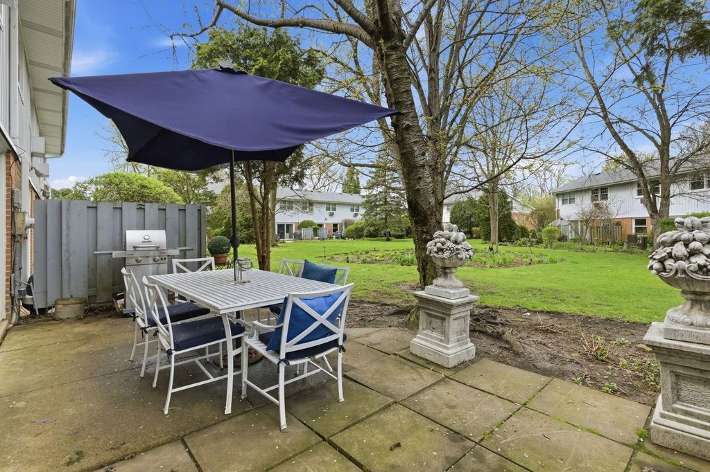 Move in ready townhome close to everything Northfield has to offer including summer fireworks, live music and farmers market at Clarkson Park! Beautiful light filled interior with vaulted living room ceiling, kitchen with eating area open to family room, two bedrooms and two updated bathrooms. Recent improvements include new electric remote start fireplace (2026), new quartz kithcen counters, new freshly painted kitchen cabinets and walls, new roof (June 2025), new air conditioning units, new windows, new water heater, new microwave, refrigerator, stove and washer. Great closet space and large basement with laundry and additional storage area with new Elfa storage shelving. Private patio with garden overlooks a lush interior courtyard. Easy access to expressway plus Award winning Northfield and New Trier High School make this a winner!