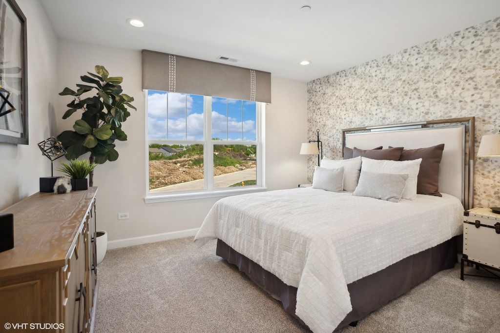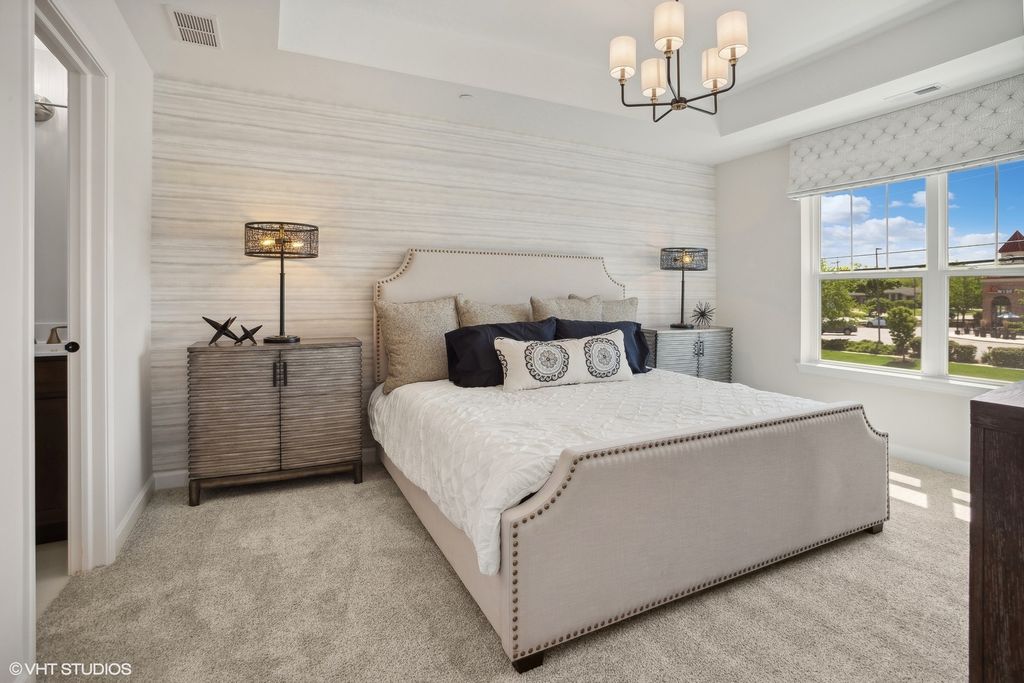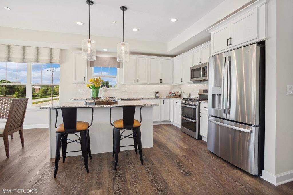 Welcome to The Townes at Mill Creek, where modern living meets convenience! This beautiful new construction, upper-level ranch home offers 2 bedrooms, a spacious den, 2 baths, and a 2-car garage, all within the heart of Addison. Step inside to discover 1,524 square feet of sprawling open-concept living, highlighted by soaring 9' ceilings and exquisite finishes throughout. This end-unit home allows an abundance of natural light in with all the windows. The kitchen showcases sleek GE stainless steel appliances, including a French door refrigerator, alongside quartz countertops and 36" wall cabinets with crown molding, soft-close doors, and drawers. The spacious primary bedroom boasts a serene tray ceiling, a large walk-in closet, and a beautiful en-suite bathroom with upgraded finishes and a double bowl vanity. You'll love the additional den that offers a versatile space for work or relaxation, with charming French doors and a tray ceiling. Please note that the photos shown are of the Model home and do not represent the finishes for this specific home. With its prime location, this property ensures effortless access to major expressways, retail shopping destinations, and endless dining options along Lake St. This development is second to none. Set up a tour today!
