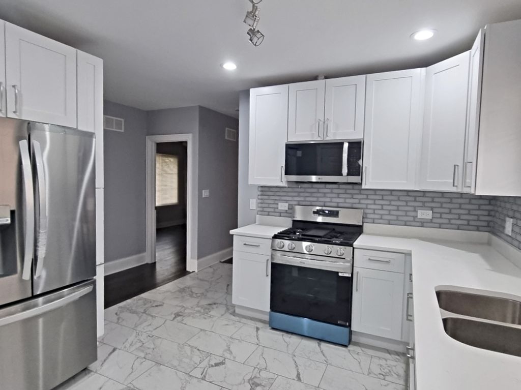 Absolutely amazing and huge 6 bedroom stunning home with three floors of living space. Kitchen features gorgeous chef's kitchen with 42" cabinets, granite countertops, contemporary back splash and stainless steel appliances. Designer tiled bathrooms on each level. First floor has beautiful hardwood flooring throughout with an open floor plan, Huge living room, dining room, kitchen , 2 bedrooms and full bath. 2nd level has 2 generous sized bedrooms, a common full bathroom and spacious closets. Lower level has huge entertainment/family room with 2 additional bedrooms, full bath and laundry room. Side drive leads to nice sized yard with 2 car oversized brick garage. Excellent location with quiet neighborhood. DON'T MISS THIS CHARMING IMMACULATE HOME!!!
