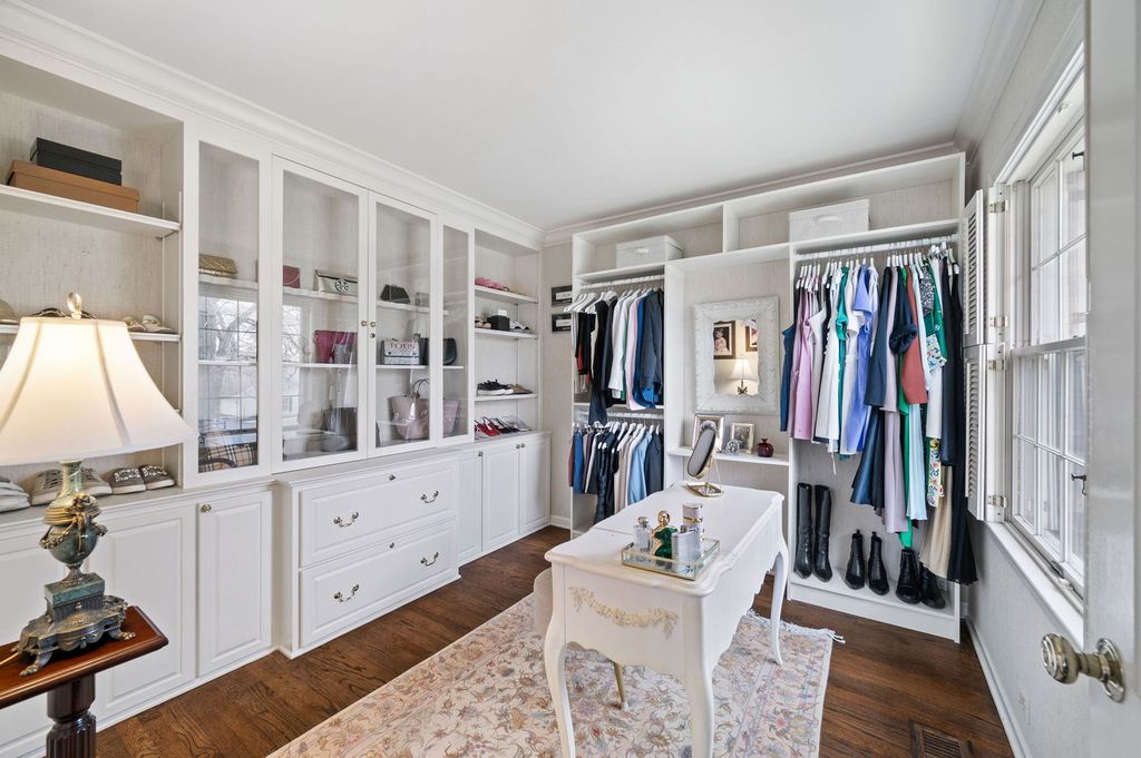 Stately all-brick Georgian offering exceptional curb appeal, ideally positioned on a quiet street just off a cul-de-sac in the highly sought-after Meadowood neighborhood, steps from Meadowood Park and the scenic trails of Middlefork Savanna Forest Preserve.This beautifully updated home blends timeless architecture with modern enhancements and features hardwood floors throughout. The main level offers a gracious living room with wood burning fireplace, generous size dining room, and a family room with fireplace and new sliding doors opening to the bluestone patio. A newly renovated full bathroom and a fully renovated kitchen with a new island and sunlit breakfast area complete the space. A functional mudroom with laundry adds everyday convenience. Upstairs, the spacious primary suite features a beautifully appointed bathroom with walk-in shower and dual vanity, along with a custom-designed walk-in closet. Two additional bedrooms, a stunningly renovated guest bath, and a generous walk-in linen closet complete the second level. Beautiful plantation shutters on all windows. The finished basement provides additional living space along with abundant storage, offering flexibility for recreation, work, or organization. The professionally landscaped backyard is a true private retreat. Inspired by classic English garden design, the grounds feature a 9 zone irrigation system, lush landscaping, winding gravel paths, and a central fountain. Two bluestone patios offer multiple outdoor living spaces, including dining and lounging areas, all set within a private, beautifully maintained setting. Additional improvements include: newer HVAC (2022) AC Unit (2023), Updated electrical panel (2020), Garage and mudroom door(2022), Pella Sliding door to Patio(2022), EV Plug in Garage (2024), All attic insulation (2025).