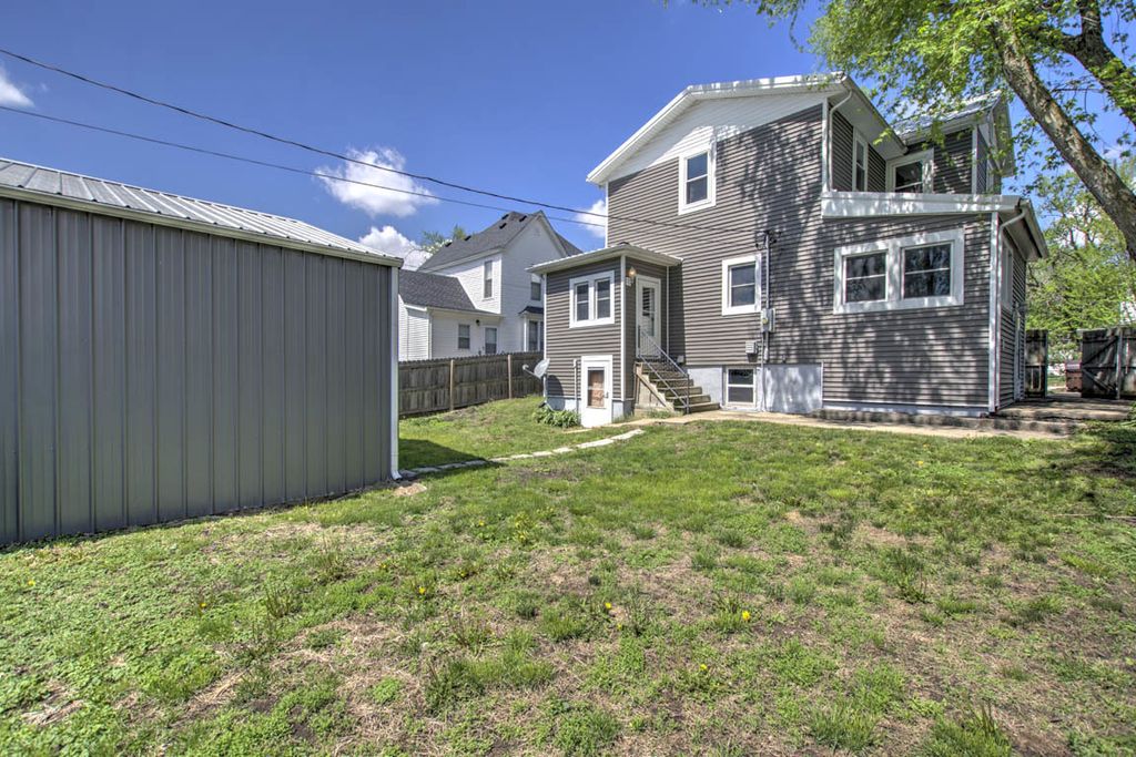 Great location in Clinton-just minutes from Hwy 51, and within walking distance to Lincoln Elementary, and the charming downtown square! This spacious two-story home offers 4 beds/2 full baths, with a main-level primary suite that includes a versatile den/office/nursery space. Enjoy relaxing and hanging out in the enclosed front porch. The kitchen boasts tons of cabinetry and has an adorable breakfast nook with banquet seating. The main-floor laundry adds to the home's functionality. One of the standout features is the impressive 26' x 36' detached garage-with a 2-car door entry (accessible from the rear alley) and additional space for cars, storage, hobbies, or entertaining-the possibilities are endless! Numerous major updates have already been completed, including vinyl siding, a metal roof on both the house and garage, replacement windows, gutter guards, privacy fence, and updated water heater and HVAC system. The basement includes an egress door leading to the backyard. Added value: a portable generator, freezer, all kitchen appliances, and washer/dryer will remain with the home. A great combination of space, updates, and location-don't miss this one!