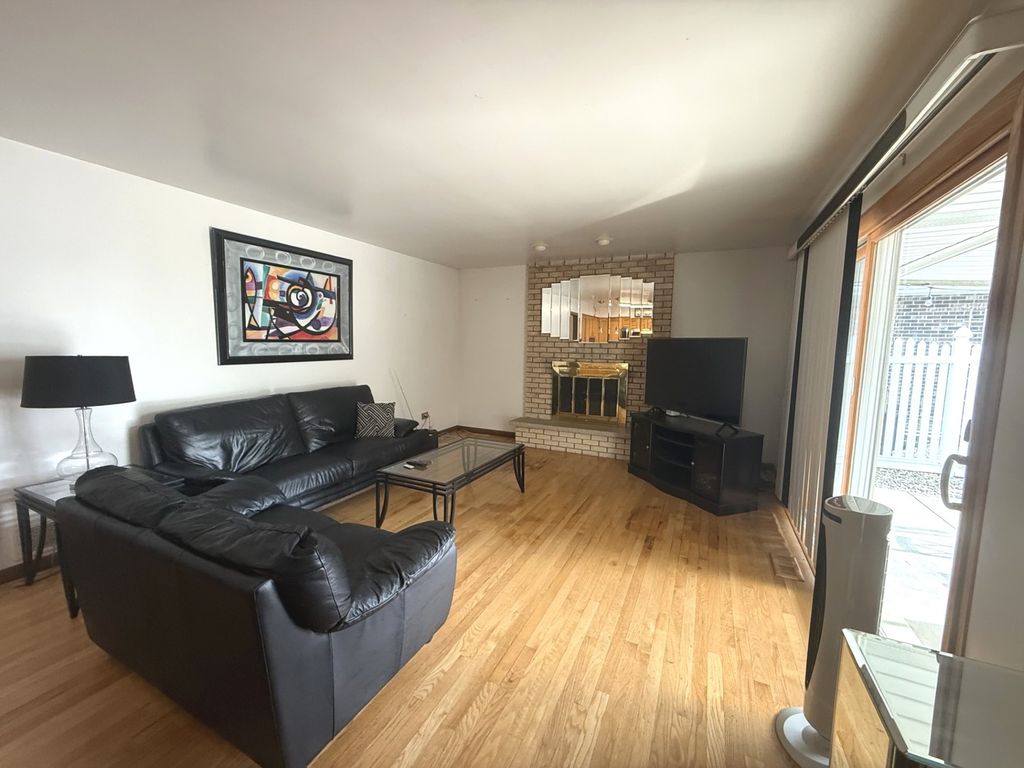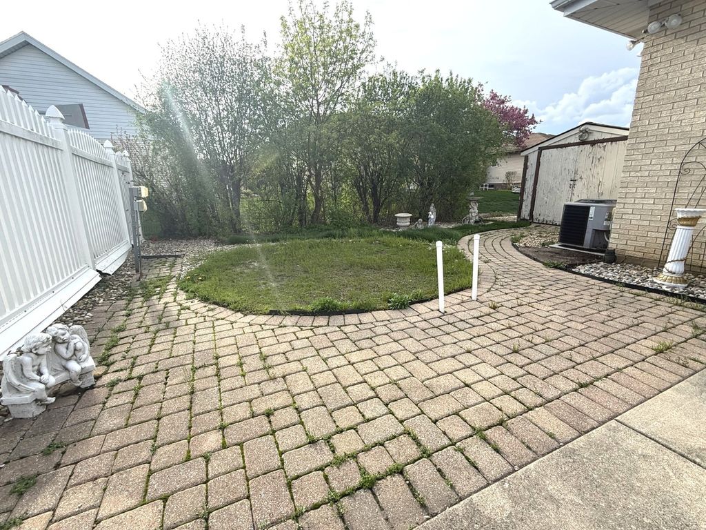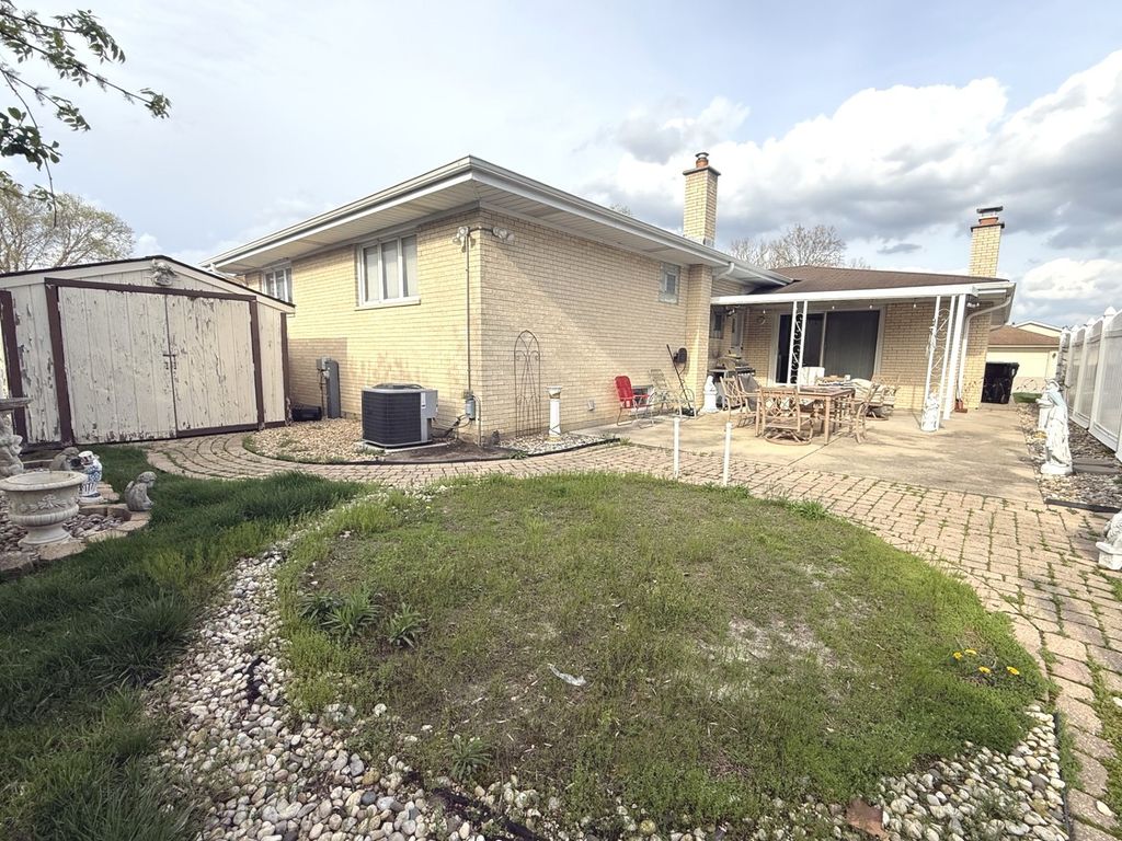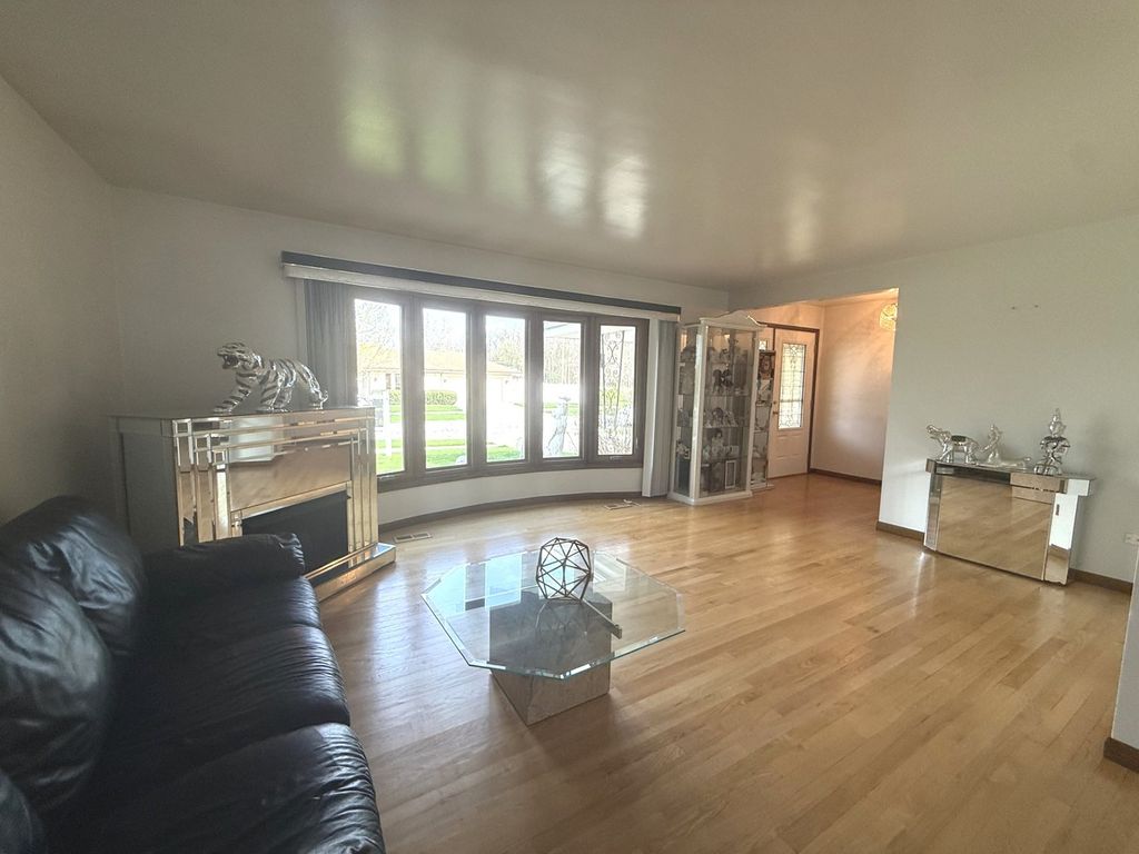All face-brick three-step Ranch, built in 1977, offering a spacious and functional layout with timeless features throughout. Solid home with room for cosmetic improvements. This home welcomes you with a foyer entry leading into a bright and expansive Living Room featuring a beautiful bay window. The adjacent L-shaped Dining Room provides ample space for entertaining and flows seamlessly into the Kitchen, which is equipped with abundant Oak cabinetry, Corian countertops, and built-in appliances. The kitchen opens to a large Family Room measuring approximately complete with a cozy wood-burning fireplace-perfect for everyday living and gatherings. A convenient powder room is located just off the kitchen. Hardwood Oak flooring runs throughout the main level and all bedrooms, adding warmth and continuity to the home. Just a few steps up, you'll find the private bedroom wing. The Primary Suite offers two closets and a three-quarter bath with a stand-up shower. The second Bedroom features hardwood floors and also has two closets, while the third Bedroom also includes hardwood flooring. A full hallway with linen and storage closets completes this level. The home includes a large unfinished basement with high ceilings, offering excellent potential for additional living space. There is also a full cemented crawlspace beneath the main level, providing exceptional storage. Mechanical updates include a newer water heater with expansion tank and the home also has central air. The furnace has been well maintained and is estimated to be approximately 10 years old. Exterior features include an attached two-car garage, a driveway for additional parking, and a backyard with a covered patio and paver brick area-ideal for outdoor enjoyment. Pride of ownership shows, with the same family having cared for the home for over 25 years. Seller is offering a one-year Home Warranty. Conveniently located near shopping, restaurants, banking, and within a short drive to major expressways, making commuting and daily errands a breeze.
