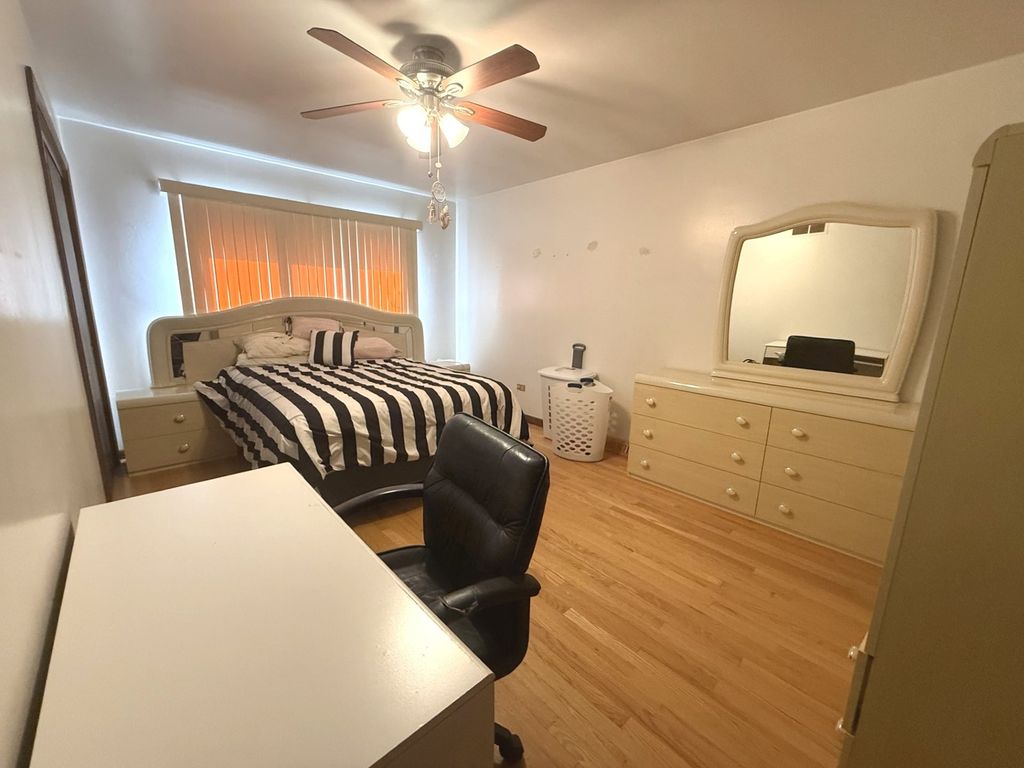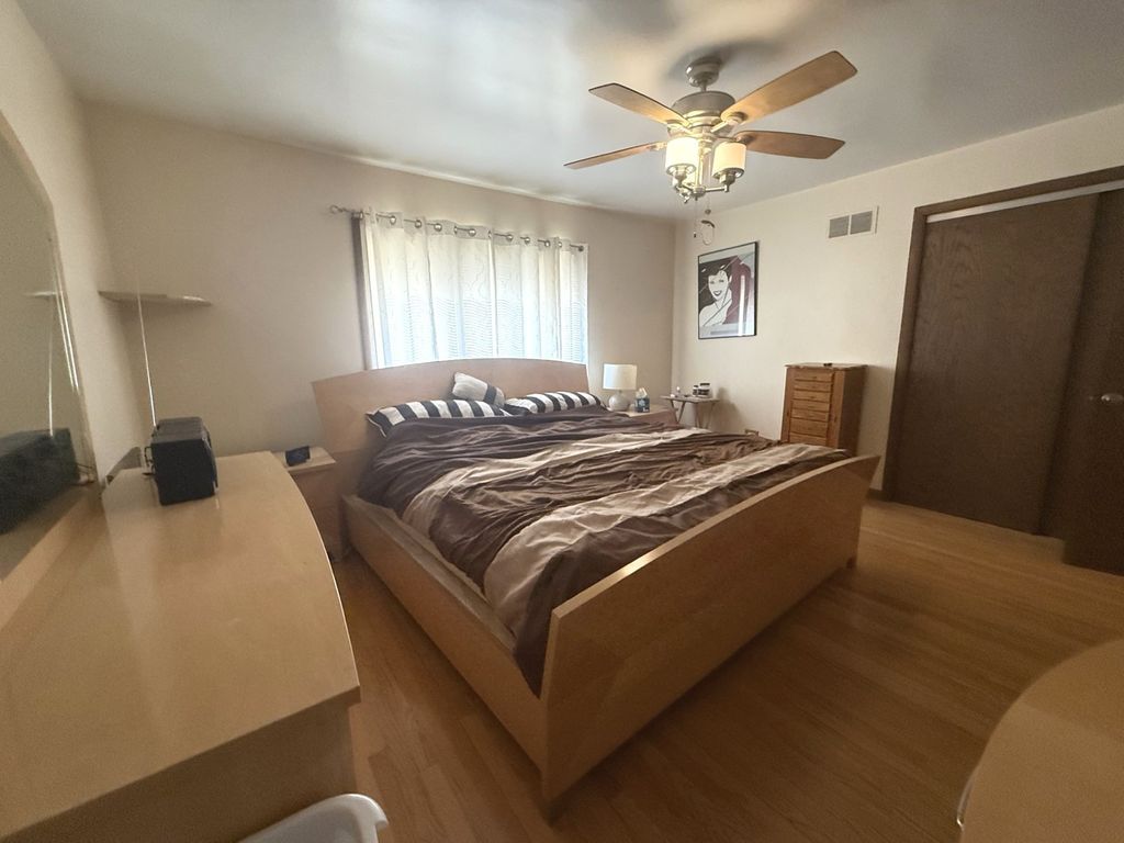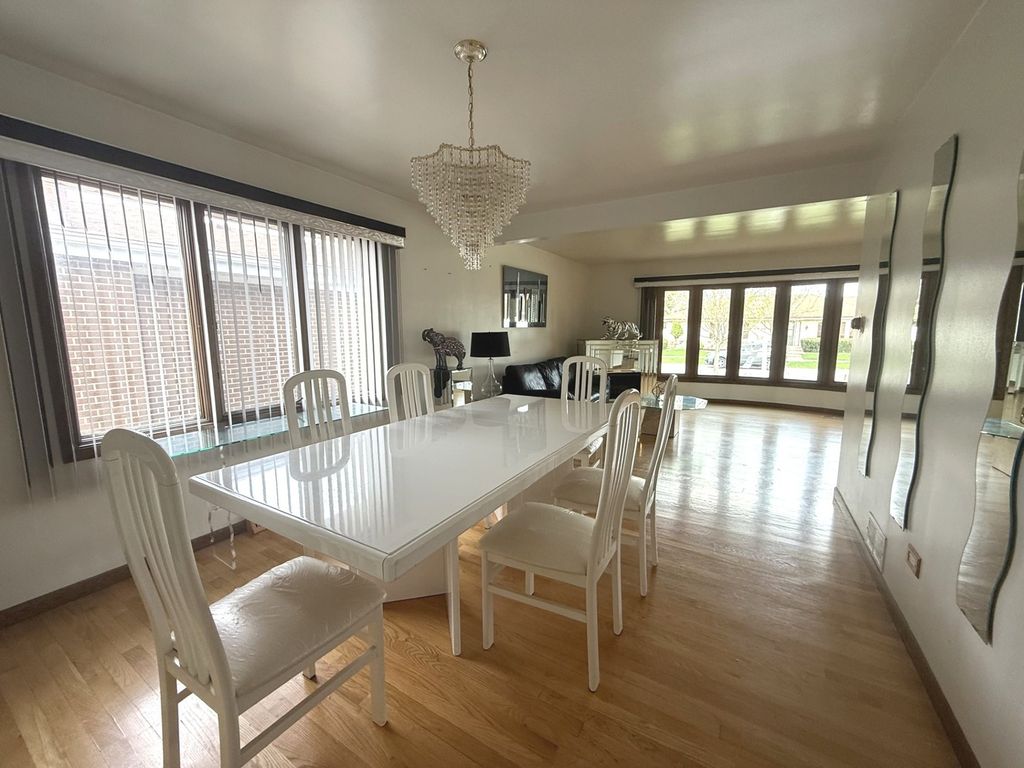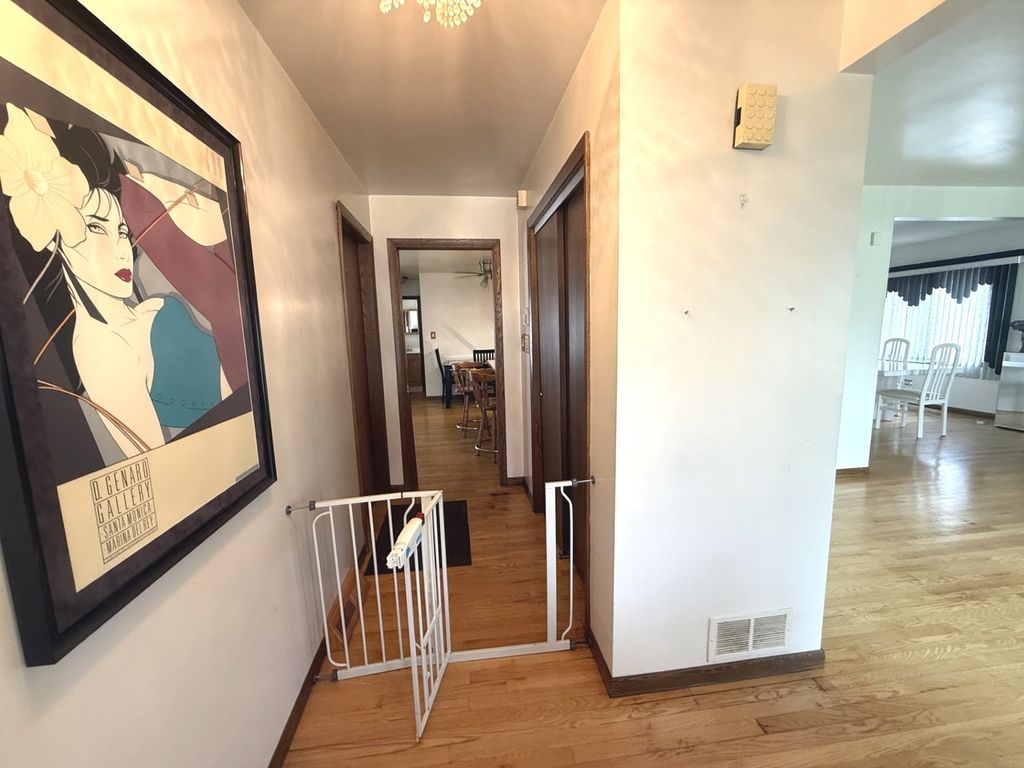 All face-brick three-step Ranch, built in 1977, offering a spacious and functional layout with timeless features throughout. Solid home with room for cosmetic improvements. This home welcomes you with a foyer entry leading into a bright and expansive Living Room featuring a beautiful bay window. The adjacent L-shaped Dining Room provides ample space for entertaining and flows seamlessly into the Kitchen, which is equipped with abundant Oak cabinetry, Corian countertops, and built-in appliances. The kitchen opens to a large Family Room measuring approximately complete with a cozy wood-burning fireplace-perfect for everyday living and gatherings. A convenient powder room is located just off the kitchen. Hardwood Oak flooring runs throughout the main level and all bedrooms, adding warmth and continuity to the home. Just a few steps up, you'll find the private bedroom wing. The Primary Suite offers two closets and a three-quarter bath with a stand-up shower. The second Bedroom features hardwood floors and also has two closets, while the third Bedroom also includes hardwood flooring. A full hallway with linen and storage closets completes this level. The home includes a large unfinished basement with high ceilings, offering excellent potential for additional living space. There is also a full cemented crawlspace beneath the main level, providing exceptional storage. Mechanical updates include a newer water heater with expansion tank and the home also has central air. The furnace has been well maintained and is estimated to be approximately 10 years old. Exterior features include an attached two-car garage, a driveway for additional parking, and a backyard with a covered patio and paver brick area-ideal for outdoor enjoyment. Pride of ownership shows, with the same family having cared for the home for over 25 years. Seller is offering a one-year Home Warranty. Conveniently located near shopping, restaurants, banking, and within a short drive to major expressways, making commuting and daily errands a breeze.