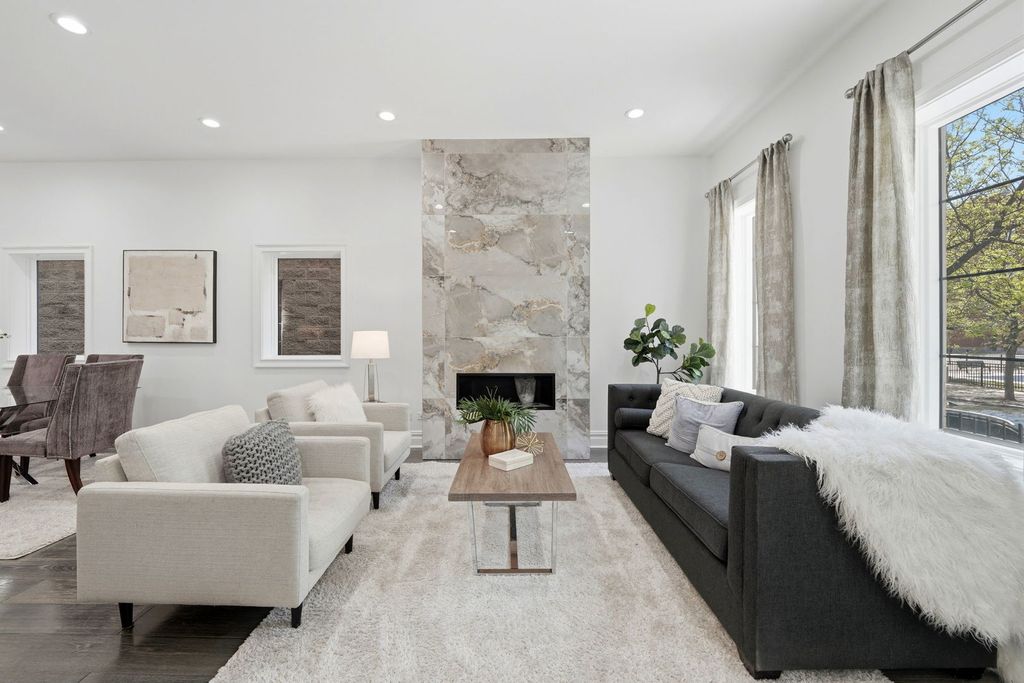 Welcome to this exceptional luxury single-family home, offering approximately 4,500 square feet of thoughtfully designed living space with 6 bedrooms and 4.1 baths, located in a residential cul-de-sac. This stunning residence features an open-concept floor plan anchored by a dramatic floor-to-ceiling marble gas fireplace, creating a striking focal point for both everyday living and entertaining. The custom chef's kitchen is a true showpiece, equipped with a Sub-Zero refrigerator, Viking Range, Bosch dishwasher, and an oversized waterfall island. A butler's pantry with wet bar seamlessly extends the space, perfect for hosting and elevated convenience. The second level boasts a magnificent primary ensuite and direct access to a private walkout balcony leading to the rooftop deck. The suite is complete with a custom walk-in closet and a spa-caliber bath featuring a multi-spray glass-enclosed shower, separate soaking tub, and dual vanity. Three additional bedrooms, two full baths, and a conveniently located laundry room complete this level. The lower level offers radiant heated floors throughout and is designed for comfort and versatility, featuring a spacious family room/Theatre room, wet bar, full bath, and guest bedroom, along with an additional room ideal for a home office, gym, or flex space. Crowning the home is an expansive rooftop deck above the rare three-car garage, delivering incredible sweeping skyline views of downtown Chicago -perfect for entertaining or relaxing. Ideally located near the Blue Line at Division and Ashland, with quick access to I-90/94, Metra, and downtown Chicago, this home also offers close proximity to the 606 Trail, premier shopping, dining, and vibrant nightlife that define Bucktown and Wicker Park living.
