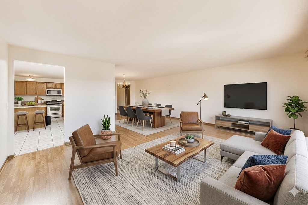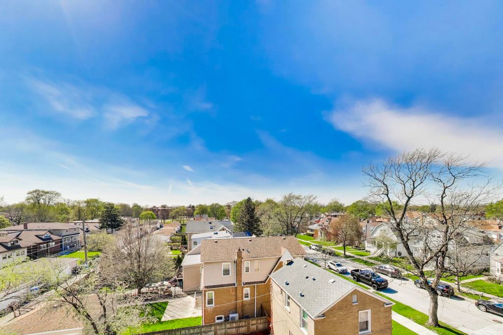 Sun-drenched, 5th floor, corner penthouse unit in quiet & secure boutique elevator building. Pristine, over 1750 sq ft with 2 bedrooms, 2 baths, and a den that easily could be converted to a 3rd bedroom. Massive great room with dining area. Stunning baths with custom master in May 2025 and the hall bath done in 2022. Enormous kitchen with skylight, stainless steel appliances and plenty of cabinets as well as counter space. Gorgeous engineered hardwood floors. In-unit laundry room. Enjoy sunsets on the 20' covered balcony overlooking the Edison Park neighborhood. Heated garage parking #6 with additional private storage just behind it. Party room and receiving room on the ground floor with plenty of outdoor guest parking. Ideally located 2 blocks from Ebinger school, and a short walk to downtown Edison Park (Metra, restaurants, and shopping). Cats ok, no rentals. Come take advantage of this rare opportunity.