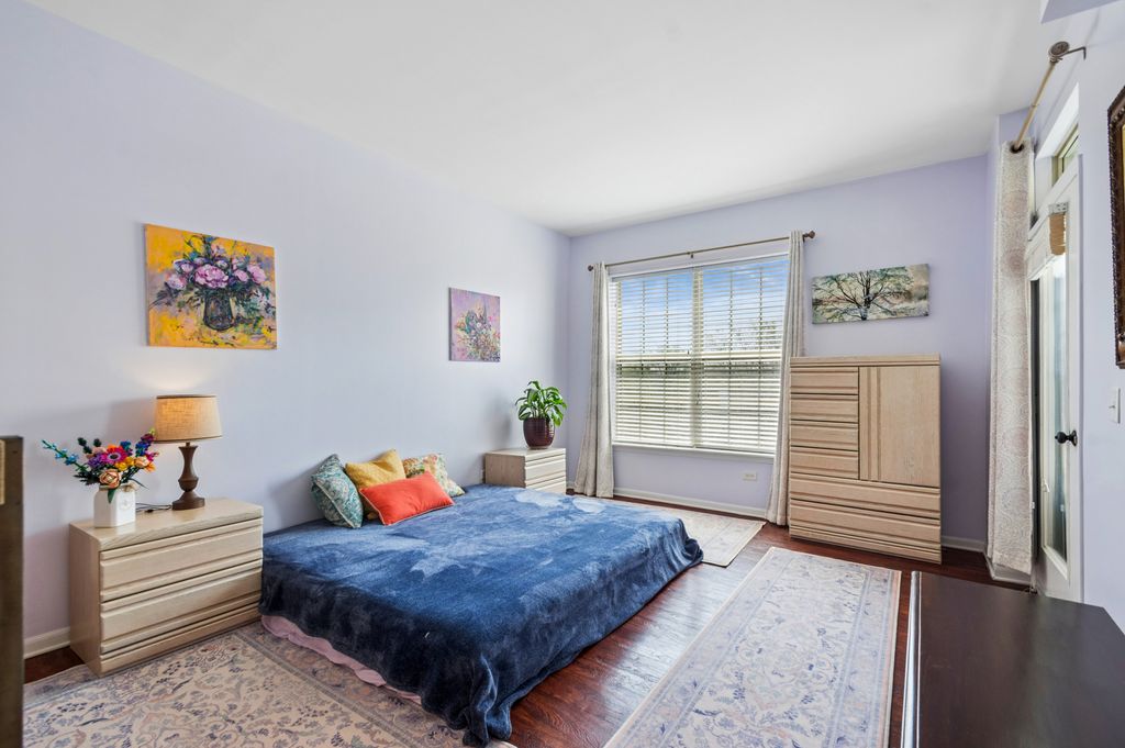 Stunning top floor unit with southern exposure in a quiet pocket of Rolling Meadows. This spacious condo offers the ultimate in quiet, refined living in a well-maintained elevator complex with underground heated garage. As soon as you enter you're greeted by the wide-open space, high ceilings, and sliding doors leading to the wide, relaxing balcony with unobstructed views to the south that floods the unit with natural light. The cozy living room effortlessly opens to the kitchen area with a breakfast nook, granite counters, modern cabinets and appliances. The primary bedroom wing is a true oasis, with balcony access, great light, double-sink Quartz counter vanity, soaking tub, and convenient walk-in closet. The second bedroom on the other side also has great lighting and access to a shared second bathroom. This unit not only has the convenience of lots of additional closet space, but an in-unit laundry room, balcony where you can enjoy the sunsets and annual 4th of July fireworks show, radiant heating throughout, private heated garage space, and a storage locker. Conveniently located within walking distance to area shopping/dining, public library, 6 area parks including ninja warrior park and pickleball courts, walking paths, community center with pool, and so many area amenities. ACT FAST.