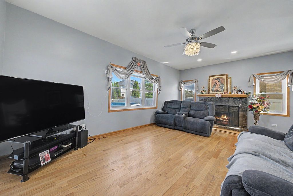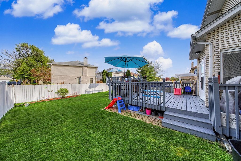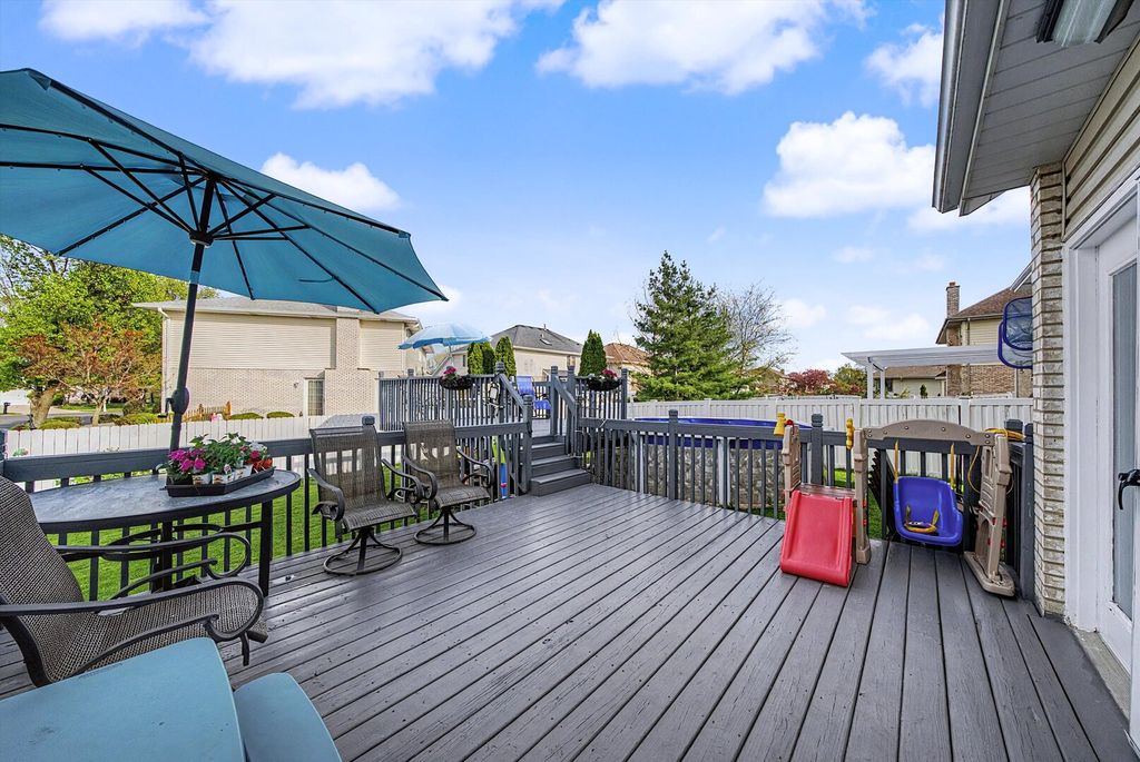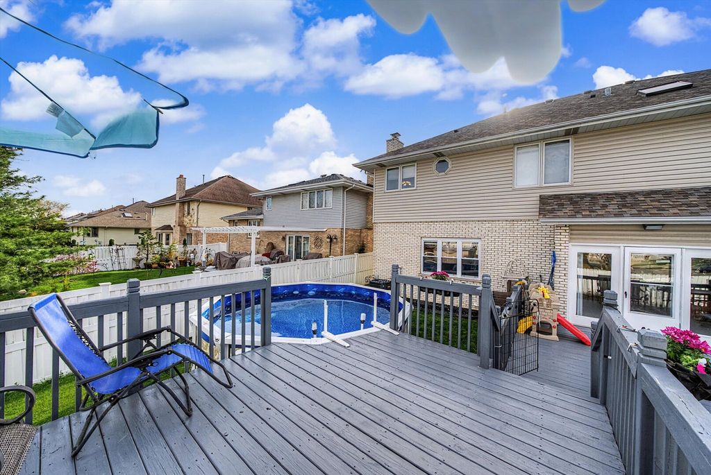 Desirable Elegant Eagle Ridge in Oak Lawn Beautiful Two-Story home with 5 beds, 3.5 baths. Master suite with double vanity, garden 0tub, and separate shower. Main level Family room with gas fireplace; living room with two-story foyer and bay window. The hardwood floors were recently refinished, elegant Formal dining room, Kitchen with granite countertops, and newer stainless appliances with Island, nice custom glass backsplash, pantry, built in desk, have breakfast, looking to a nice perfectly care for back yard, and deck. Fully finished basement with related living a perfect and huge recreation room, and summer kitchen, the bedroom in the basement adds extra living space , house has everything you need to live comfortably and happy, and is not everything the houses comes with a nice pool with a brand new lining the deck is for perfect gathering, and entertaining ,the above ground h pool has a brand new lining. The garage has built on cabinets and epoxy flooring, newer roof, and most newer windows as well, this luxury home is waiting for you and it has too much to list everything, come see for yourself. Please show to only approved buyers