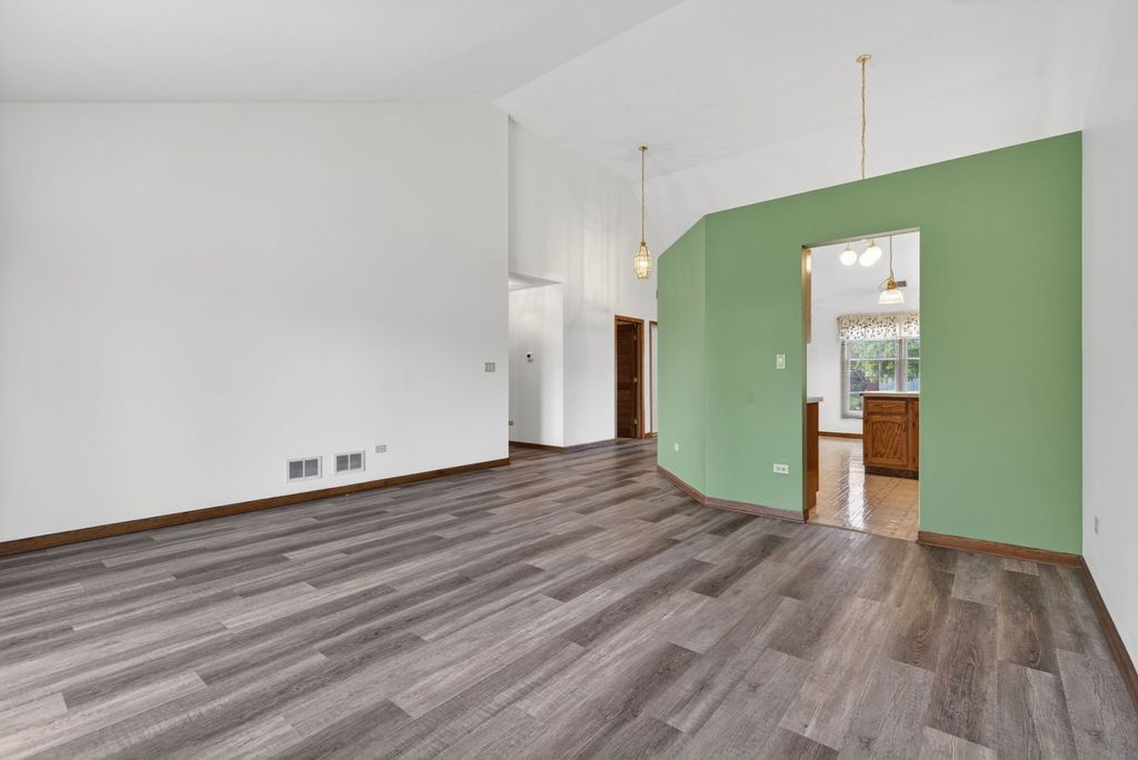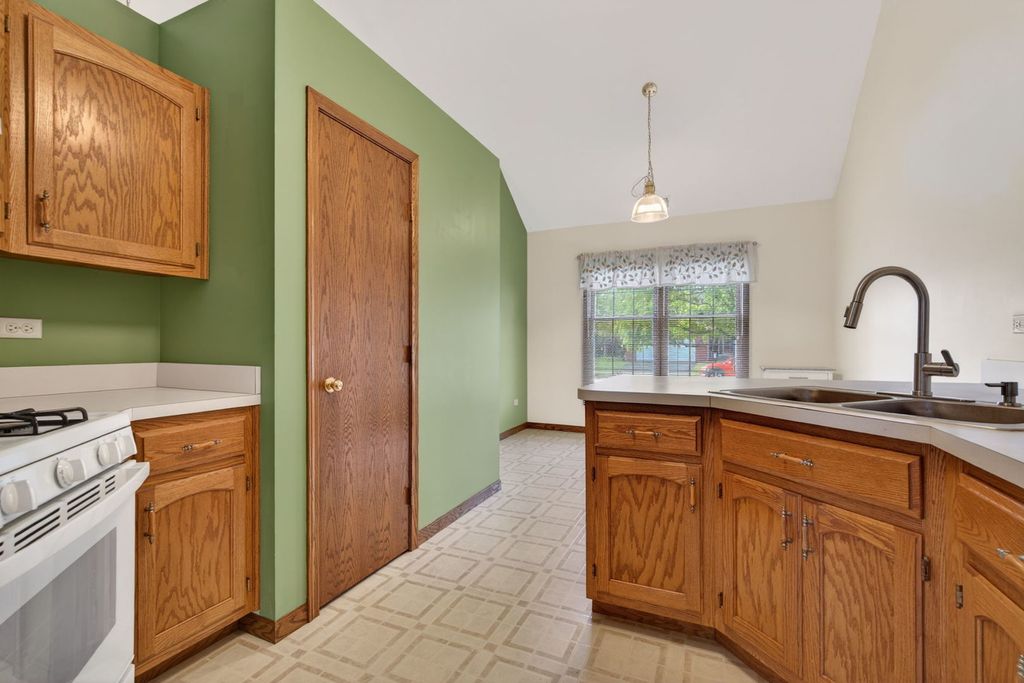 Welcome to this well-maintained ranch in the sought-after Townhomes on the Lake community! This 2-bedroom, 1-bath home features a spacious kitchen with a dinette area and pantry, perfect for everyday living. The inviting family room offers vaulted ceilings and direct access to the patio, creating a bright and open feel. The primary suite includes vaulted ceilings, a walk-in closet, and convenient access to the shared bathroom, while the second bedroom is generously sized. Located near I-55, this home provides easy access to shopping, dining, and more. Recent updates include a new roof (2020), furnace (2021), laminate flooring (2024), and fresh paint in the bedrooms and garage.