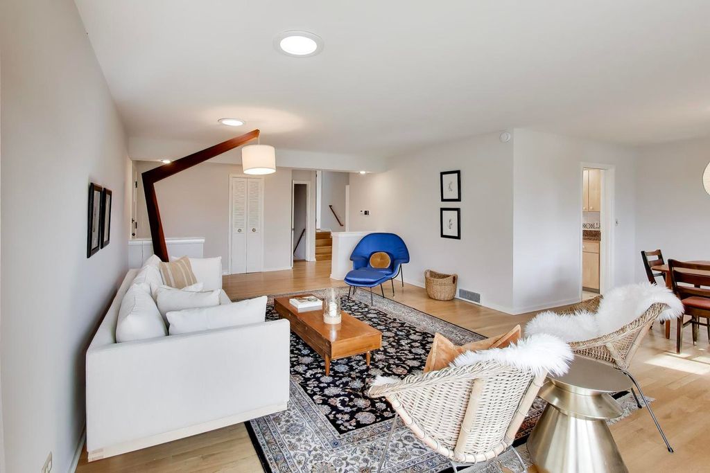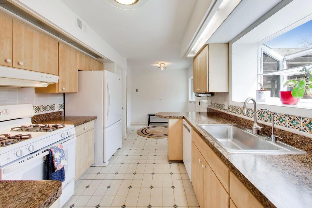 Eco-friendly and Energy Star-rated, this well-maintained jumbo split-level home is ideally located in southwest Evanston. Thoughtfully updated for comfort and sustainability, it offers a great blend of modern living and green features. The bright, sun-filled living and dining area showcases hardwood floors, fresh paint throughout, and added natural light from solar tubes. The home includes energy-efficient upgrades including a heat pump and solar panels that help reduce utility costs. Upstairs features three spacious bedrooms and an updated full bath. The lower level offers a large family room with a kitchenette, a fourth bedroom or office, and an additional full bath-perfect for guests or flexible living. A full sub-basement adds extra storage and living space. Enjoy the outdoors with a Trex deck, paver walkways, and beautifully landscaped gardens with native plants, a rain garden, and space for growing your own vegetables. Complete with a rarely available driveway and a 2 1/2-car detached garage, this home is conveniently located near schools, the Levy Community Center, James Park with brand new pickleball courts. A rare opportunity for sustainable living in a desirable Evanston neighborhood!