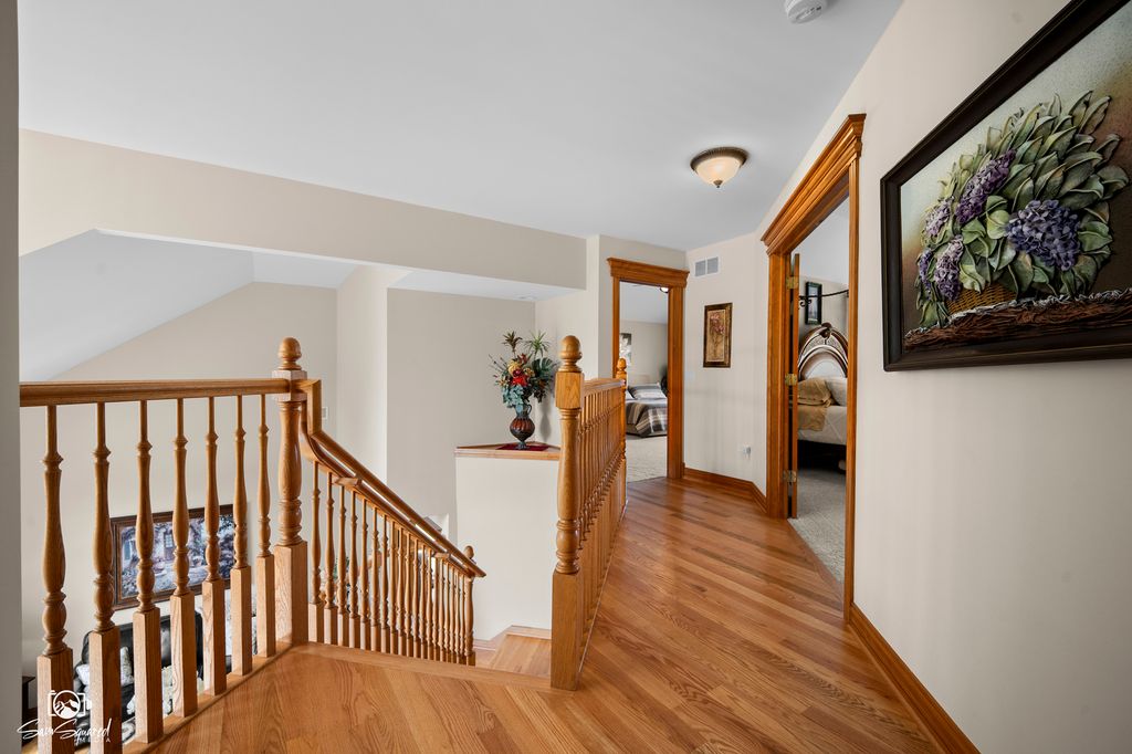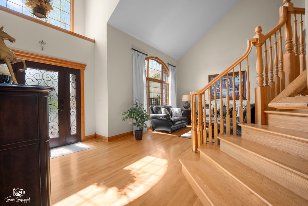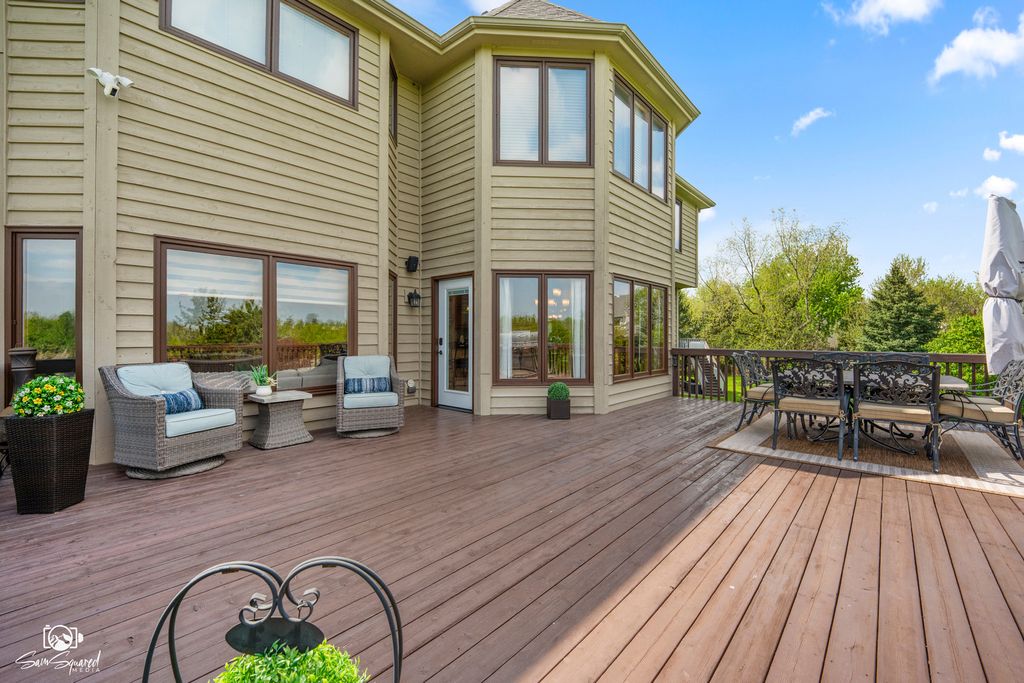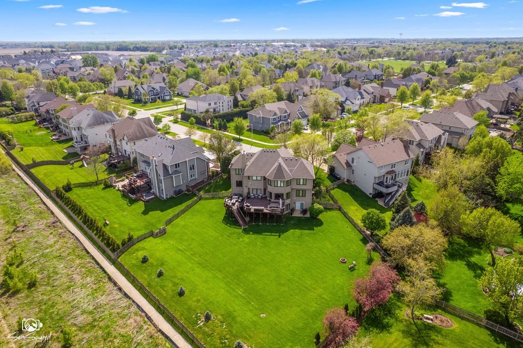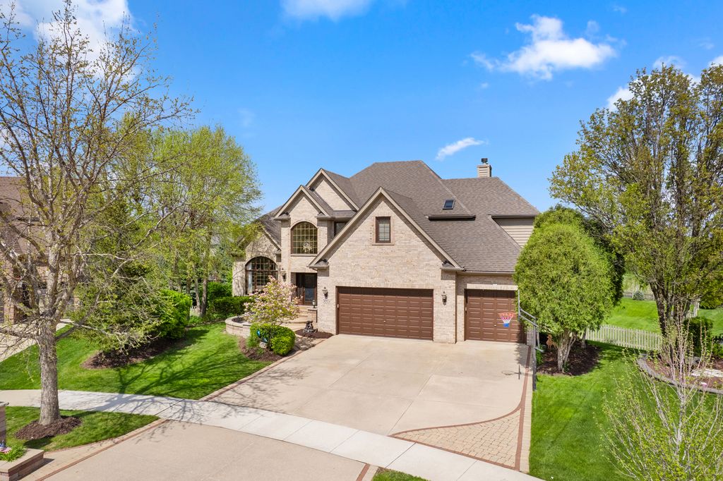 Proudly offered and meticulously maintained by its original owners, this masterfully crafted brick & cedar residence combines timeless architecture with exquisite enhancements of generous living spaces across three finished levels, including a walk-out basement and it's gracefully positioned on over 1/2 acre of manicured yard in sought-after South Pointe of Naperville. Paver walkways lead to the impressive glass door inviting you to step into foyer, where a grand curved staircase, soaring two-story ceilings, and stunning hardwood flooring throughout the main level set the tone for the home's elegance. A formal living room with oversized window and a dining room with intricate millwork provide the perfect backdrop for gatherings with friends and family. The heart of the home is the kitchen that boasts abundant timeless wood cabinetry, granite counters, high end appliances (2022) breakfast bar with adjacent breakfast room that is bathed in morning sun with six expansive windows and direct access to the deck. Step outside to a multi-level deck and fully fenced yard for the four legged family and enjoy the serenity of nature all around with no backyard neighbor but a view of a Riverview Farmstead Preserve. Generously sized family room features a stone-front gas (could be converted to wood) fireplace, creating a warm and comfortable gathering space with walls of windows to let in the serene views of the outside. A private office with a custom wood bookcase and views of the outside makes work from home more enjoyable. The hardwood flooring continues to the 2nd floor hallway that leads to 4 spacious bedrooms with a plush carpet (2022), and laundry room for added convenience. The double door entry invites you to relax in a spacious primary suite with room for reading nook, luxury bathroom with dual vanities, soaking tub and walk-in shower and a show stopping walk-in closet. A second bedroom is a "princess" ensuite with its own private bath and walk -in closet. Bedroom three and four, all with walk in closets feature Jack and Jill bathroom with whirlpool tub/shower and skylights for natural light. The fully finished walk-out basement is an entertainer's dream, boasting a large open-concept space that includes a TV area, game room, and 5th bedroom along with full bath with walk-in shower ideal for overnight guests or extended family. The secondary basement accessed via the three-car garage (professionally epoxy sealed) offers rare opportunity for multi-generational living and easy access to ample storage/utility room and 2nd laundry space with front load washer and dryer. Every inch of this home has been meticulously crafted to blend comfort, elegance, and everyday functionality-creating a space that feels both luxurious and effortlessly livable. From its thoughtfully planned layout (spacious rooms, walk-in closets, walk out basement) to its inviting atmosphere (large windows, hardwood floors, custom millwork, all walls feature spray insulation for enhanced soundproofing and energy efficiency.), this is a home you'll truly never want to leave. Ideally located in Naperville-consistently recognized as one of the best places to live-and within the highly regarded Plainfield school district, it's nestled in a serene, picturesque neighborhood that offers both tranquility and a strong sense of community.