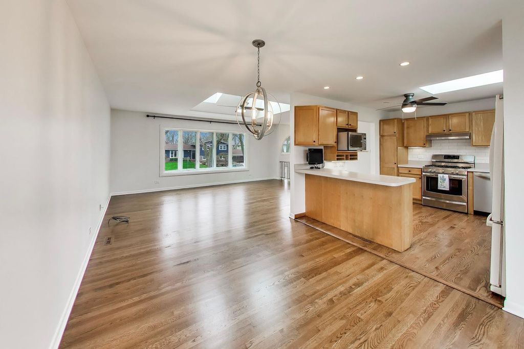 Rarely available and highly coveted park home backing directly to McCollum Park in the heart of Downers Grove! Opportunities like this are incredibly rare, and this exceptional residence is even more desirable as one of the uncommon 4-bedroom models in a neighborhood where most park homes offer only 3 bedrooms. With 2,339 square feet, 4 bedrooms, 2 full baths, and an unbeatable setting, this is the kind of home buyers wait years to find. From the moment you step inside, you'll appreciate the warmth, character, and natural light that make this home truly special. A charming bow window and multiple skylights throughout the main level create a bright, inviting atmosphere rarely found in nearby homes. Newly refinished hardwood floors flow through the main living area, while fresh paint and tasteful updates make the home completely move-in ready. The thoughtfully designed layout features all four bedrooms on the same level-an ideal setup offering convenience and functionality that today's buyers love. Both full bathrooms have been beautifully updated, and the newly refinished basement provides valuable additional living space perfect for a family room, playroom, home gym, office, or guest retreat. Major improvements provide peace of mind, including newer siding, windows, doors, sliding doors, furnace, hot water heater, and ceiling fans. Storage is abundant throughout the home and continues in the spacious 2-car garage with additional storage space. Step outside and enjoy one of this home's most incredible features: the expansive full-width rear deck overlooking the park-perfect for morning coffee off the primary bedroom, summer entertaining, or simply unwinding with serene green space views. The huge backyard also features a professionally landscaped custom flagstone patio with a firepit, creating the ideal setting for gatherings in every season. Location is everything, and this home delivers. Enjoy direct access to McCollum Park's trails, playgrounds, sports fields, and open green space, while also being within walking distance to the elementary school and high school-an exceptional convenience for everyday living. Located in one of Downers Grove's most sought-after neighborhoods, this is more than a home-it's a lifestyle. Too many updates to list here-ask for the full improvements list.