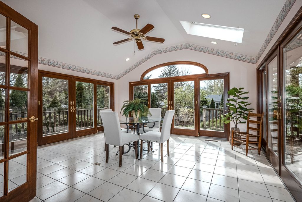 FIRST FLOOR LIVING is effortless in this spacious ranch set in a desirable neighborhood. A welcoming covered front porch leads you inside, where you'll find a generous living room and formal dining area - perfect for everyday living and entertaining alike. The remodeled kitchen features solid surface countertops, abundant workspace, stainless appliances and hardwood floors, along with a large main-level laundry room for added convenience. Just beyond, the kitchen opens to a bright four-season sunroom - a space you will absolutely enjoy year-round. The impressive two-story vaulted family room is filled with natural light from skylights and anchored by a masonry wood-burning fireplace, offering plenty of space to relax or gather. There is a spacious master suite with a large walk-in closet and attached bath, while two additional bedrooms share a hall bath. A partially finished basement provides additional living space along with plenty of storage. The backyard including deck, gazebo and storage shed offer a spacious setting, and while it needs some TLC, it was once a standout yard/garden featured on the Batavia Garden Walk. With some attention, it presents an incredible opportunity to create an outdoor retreat. There is a new roof (2025) with gutters and guards, high-efficiency furnace, new electric and solar powered skylights. Opportunity is knocking!