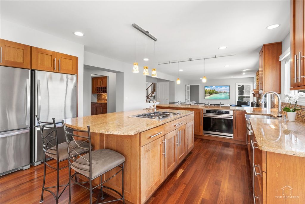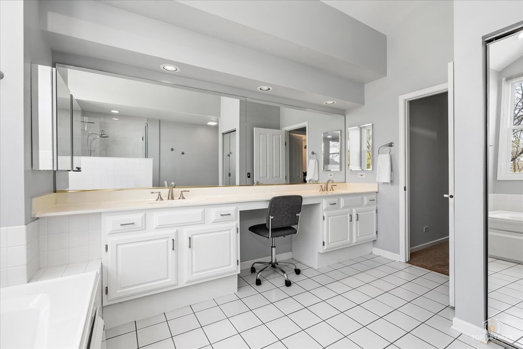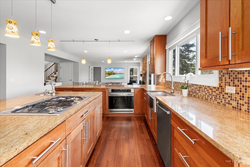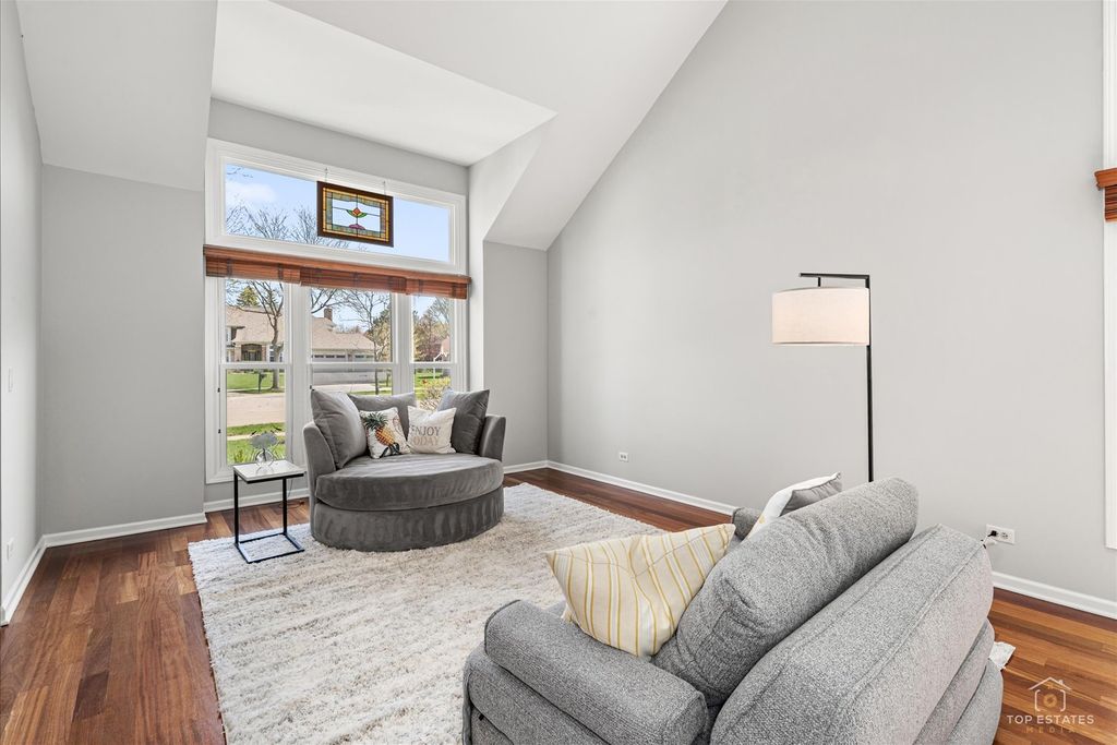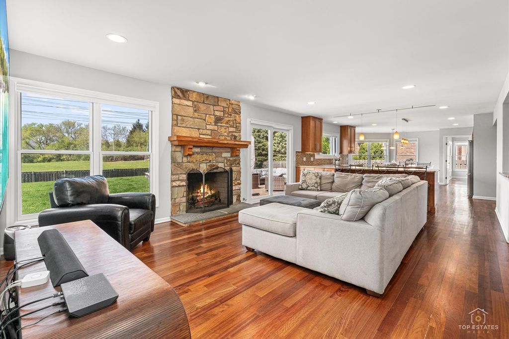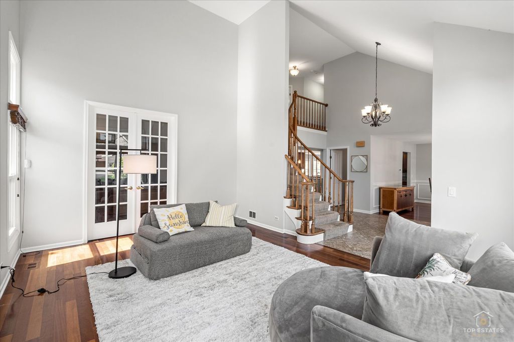 This meticulously maintained home welcomes you with a dramatic two-story foyer that flows seamlessly into an open floor plan, boasting spacious rooms with abundant natural light and Brazilian cherry hardwood floors. The heart of the home is a spacious kitchen with stainless steel appliances, including two full-sized refrigerators, and granite countertops, complemented by a bright eating area. The main level features a dedicated office and a cozy den/additional office. Upstairs, you'll find four bedrooms and two full baths, including a spacious primary suite with a bathroom featuring double sinks and a separate tub and shower. The living space extends into a fully finished basement, perfect for entertainment, complete with a combination pool, air hockey, and ping pong table. Huge fenced yard with brick paver patio. New roof in 2025. Air conditioner and A coil in 2020. Front windows and back slider in 2017. Situated in a charming neighborhood, this property offers access to award-winning schools, including Prairie, Twin Groves, and Adlai E. Stevenson High School. Close to parks and shopping!