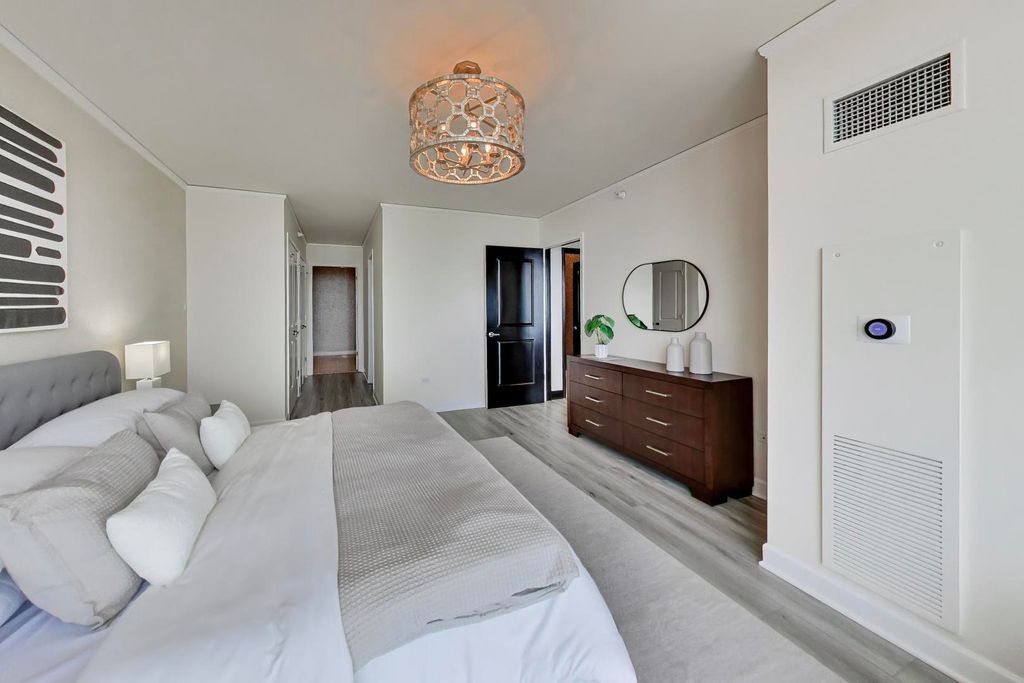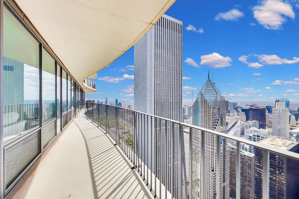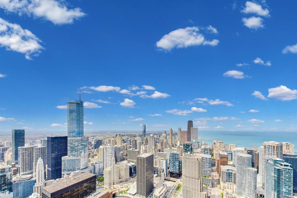 From sunrise to sunset, this luxury condo provides the most spectacular panoramic views of Lake Michigan, the Chicago skyline, and the River! This 77th floor unit has the largest 2-bedroom, 2.5 bath floorplan in the award-winning Aqua building. Thoughtful updates throughout include kitchen and bathroom renovations, newer flooring, fresh paint, and on-trend luxury lighting. This includes a beautifully rehabbed half bath. Both bedrooms offer floor to ceiling northern views, and the spacious primary offers three closets with custom organizers. Every room features custom blinds and sheers. The Aqua's amenities include 24 hour front door staff, indoor and outdoor pools, outdoor firepits and grilling areas, an expansive fitness gym and basketball court, media room, private party rooms and more. Live steps away from Millenium Park, Michigan Avenue, Monroe Harbor and the secluded East Lakeshore park. If you seek an elevated lifestyle, you will find it here. Tandem 2 car parking space available and sold separately.