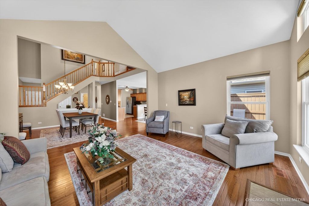 Sophisticated, low-maintenance living meets meticulous care at this beautifully maintained luxury townhome in the coveted Villas of Boulder Ridge. This beautifully cared-for one-owner home offers the perfect blend of refined style, low-maintenance living, and everyday comfort in a premier location near Boulder Ridge Country Club. The main level features hardwood floors completed in 2022, soaring ceilings, abundant natural light, and an inviting living and dining area anchored by a fireplace. The kitchen offers timeless maple cabinetry, solid surface countertops, a breakfast bar, newer appliances, a new faucet and garbage disposal, and a functional layout ideal for both everyday living and easy entertaining. Upstairs, the spacious primary suite provides a peaceful retreat with vaulted ceilings, generous closet space, and a private bath. A second bedroom and versatile loft offer excellent flexibility for guests, a home office, reading space, or additional lounge area. The finished basement expands the home beautifully with a third bedroom and additional living space, creating room for guests, recreation, fitness, media, or work-from-home needs. Outdoor living is just as easy with a private deck overlooking the well-kept surroundings. The most recent updates include NEW carpet in 2023, two loft windows and two living room windows in 2025, A/C in 2021, Furnace in 2018, Dishwasher in 2021, refrigerator and microwave in 2019, Washer and Dryer in 2018, plus a new kitchen faucet and garbage disposal in 2025. Clean, meticulous, and truly move-in ready, this home offers an elevated lifestyle with optional Boulder Ridge Country Club membership nearby, including golf, dining, pool, fitness, pickleball, and social amenities. Ideally located near Randall Road shopping, dining, everyday conveniences, I-90, Metra access, and within highly regarded Crystal Lake school boundaries.