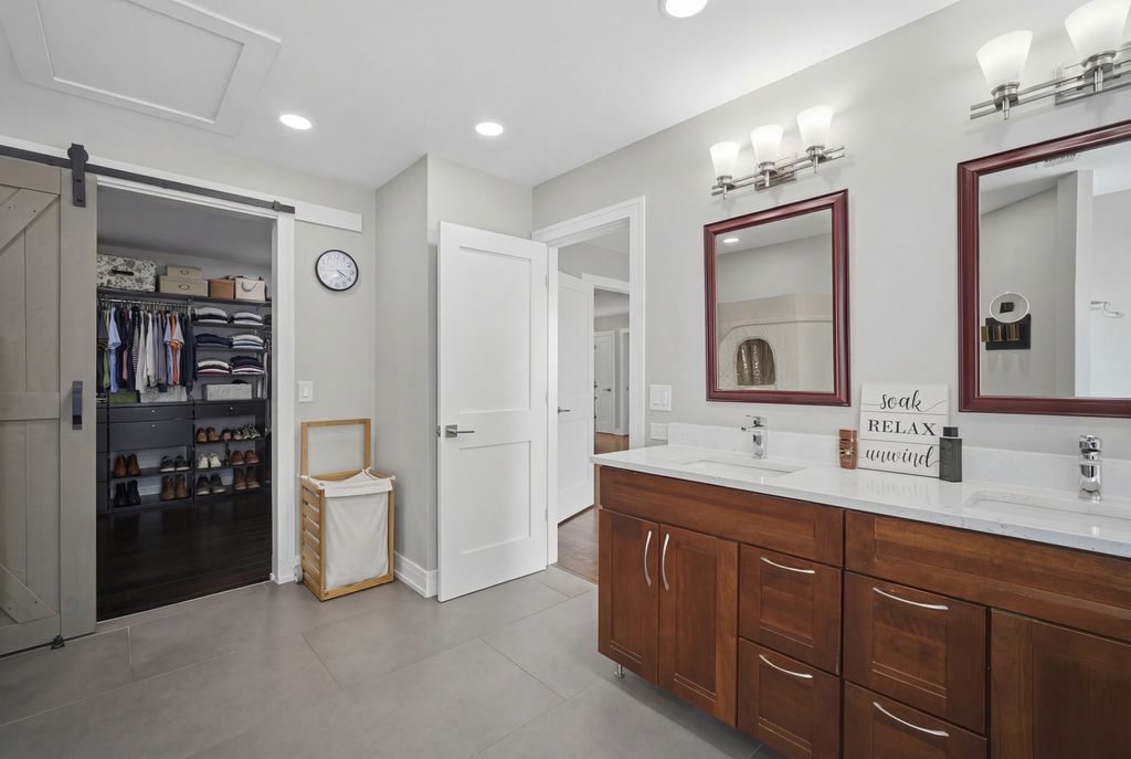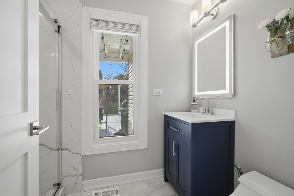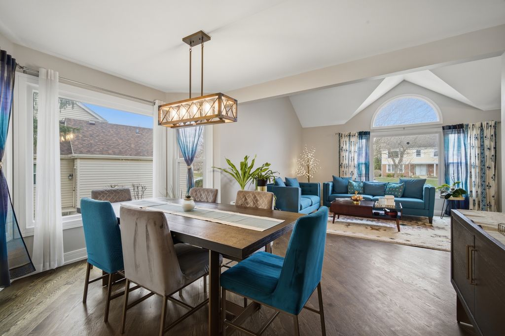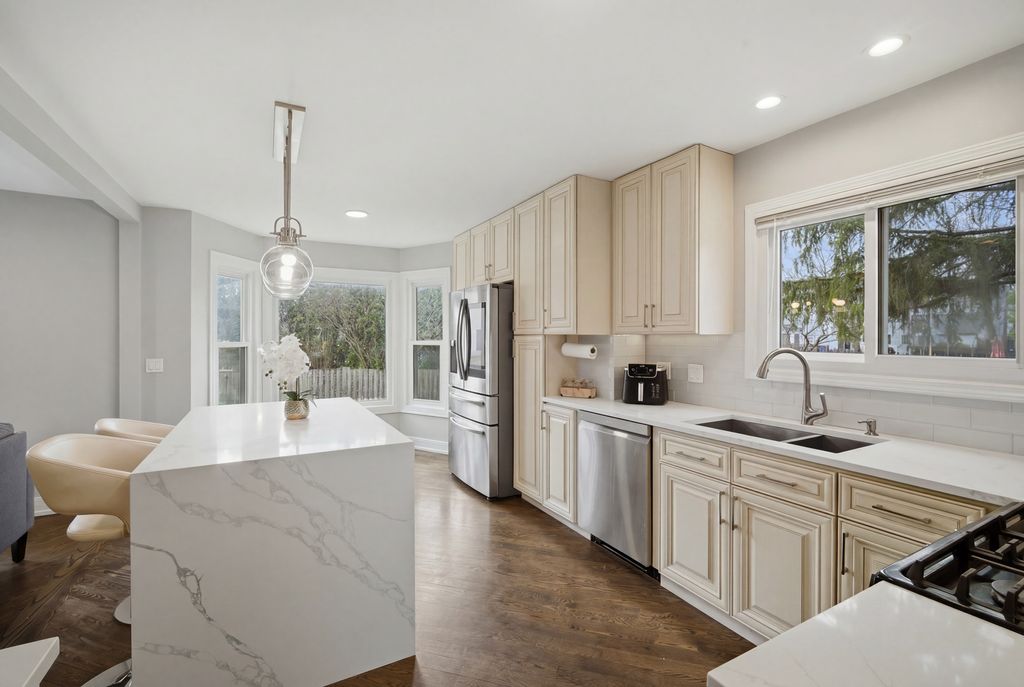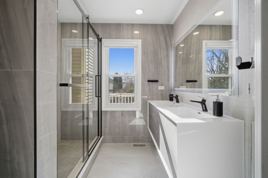 Step into a home that truly delivers on style, space, and sophistication in the sought-after Woodlands of Fiore in Buffalo Grove and the highly sought after Stevenson HS District! Everything has been thoughtfully updated with a modern palette and high-end finishes, creating a move-in-ready retreat filled with natural light. From the moment you enter, you're greeted by a dramatic two-story foyer and soaring vaulted living room, where expansive picture and Palladian windows flood the space with sunlight and highlight the gleaming hardwood floors throughout. Designed for both everyday living and entertaining, the L-shaped dining room flows seamlessly into a completely reimagined kitchen featuring brand-new stainless steel appliances, crisp white quartz countertops, and a stunning marble tile backsplash. The sunny bayed eating area overlooks the backyard, while the inviting family room showcases a sleek marble-surround fireplace and direct access to the deck. This spacious 5-bedroom 3 Bathroom home offers incredible flexibility, including a highly desirable first-floor bedroom-perfect for guests, in-laws, or a private home office and a full beautifully updated bathroom. Upstairs, the luxurious primary suite is a true retreat, complete with its own private deck/balcony, a spa-inspired bath with dual quartz vanity, soaking tub, and frameless shower, plus a custom-converted loft turned into an expansive dream closet. Three additional generously sized bedrooms offer abundant natural light and share a well-appointed full bath. The finished basement adds even more living space with a recreation room, media area, and ample storage. Outdoors, enjoy a beautifully landscaped backyard with a two-tier deck-ideal for relaxing or entertaining all season long. All of this, plus award-winning Districts 96 & 125, serving Ivy Hall Elementary and Stevenson High School. Ideally located just minutes from Transportation, Metra, Expressways, Parks, Pool, Library, Shopping, Dining, Whole Foods(coming soon), and more. A rare combination of modern updates, thoughtful design, and exceptional space-this is the one you've been waiting for! This GORGEOUS property will not last long!