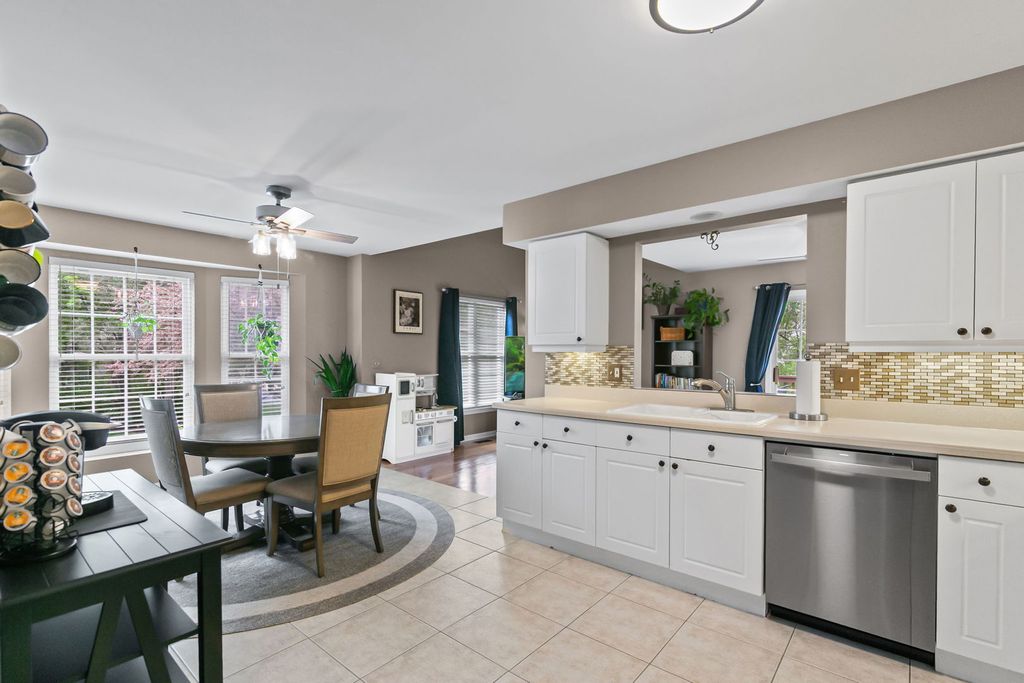 Move-in ready and beautifully maintained, this spacious home offers the perfect blend of updates and functionality. The main level features durable bamboo flooring and a flexible layout with spacious living areas filled with natural light. The open-concept kitchen showcases white cabinetry, Corian countertops, an on-trend backsplash, newer stainless steel appliances (2024), and under-cabinet lighting, all with excellent flow into the main living spaces-ideal for both everyday living and entertaining. The family room opens to the larger deck and overlooks the serene backyard space. The living room lends flexibility with options to use it as a formal living room or dining room. Upstairs, you'll find generously sized bedrooms with vaulted ceilings, a versatile loft space perfect for a home office or additional living area, and a large primary suite with dual walk-in closets and a spacious en-suite bath featuring a corner whirlpool tub. The finished basement adds valuable living space with a full bedroom, full bath, and a large recreation area. Exceptionally well cared for with great natural light, functional layout, and low association fees, this home offers incredible value in a highly desirable community.