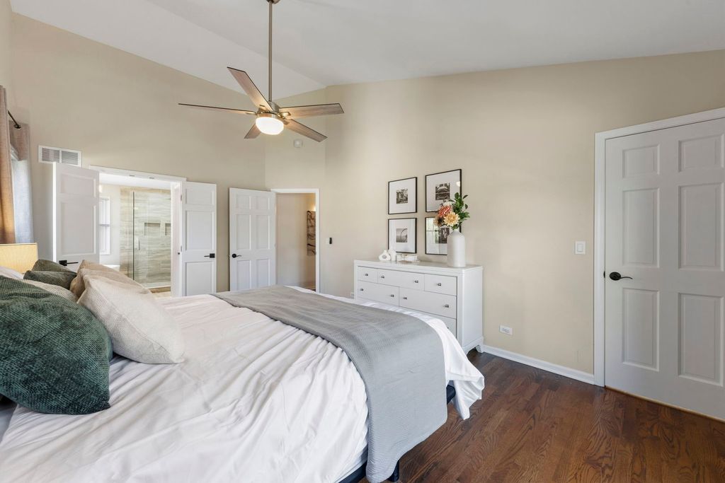 Nothing is needed in this stunning, fully updated home in Naperville's sought-after Greenway Knolls, served by award-winning District 203 Schools. Bathed in natural light, this west-facing home features soaring 9-foot ceilings and refinished/newer hardwood floors throughout the home. The heart of the home is the updated kitchen, boasting granite countertops, stylish backsplash, and high-end appliances, complete with a bright breakfast area that flows seamlessly into a spacious family room with a dramatic floor-to-ceiling brick fireplace. A formal living room and dining room with adjacent butler's pantry are perfect for entertaining and maintaining a sense of connectedness throughout the first floor. The large first floor office is a welcome benefit for professionals or could be used as a first floor bedroom for guests or related living. The first floor laundry room is connected to a mudroom just off the garage, great for dropping dirty play-clothes straight into the wash. Upstairs, the primary suite is a true retreat, featuring vaulted ceilings and a luxurious remodel with a soaker tub and dual shower heads. The secondary bedrooms are nicely sized with a beautifully updated hall bathroom. The finished basement adds lots of living space to the home, perfect for a play area or another living space, complete with a built-in bar. Outside, the lot is spacious and the freshly painted deck is ready for summer BBQs. Close to parks, trails, shopping, and dining. UPDATES: Exterior Home & Deck Painted (2026), Water Heater (2025), Dining Room - Painted, Hardwood Flooring, Lighting (2025), Kitchen - Refinished Hardwood Flooring, Granite Countertops, Painted Cabinetry, Kohler Faucet, Lighting, Oven, Range, & Microwave (2024), Powder Room (2024), Radon Mitigation System (2024), Refrigerator & Dishwasher (2022), Washer & Dryer (2021), Living Room - Hardwood Flooring (2021), Roof (2021), A/C (2021), Windows (2019).