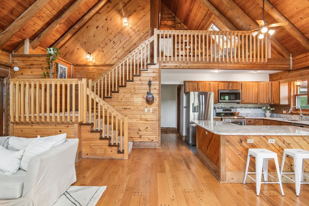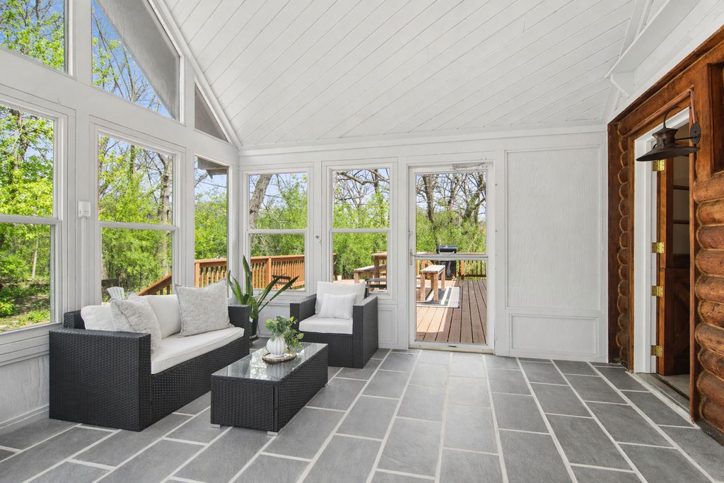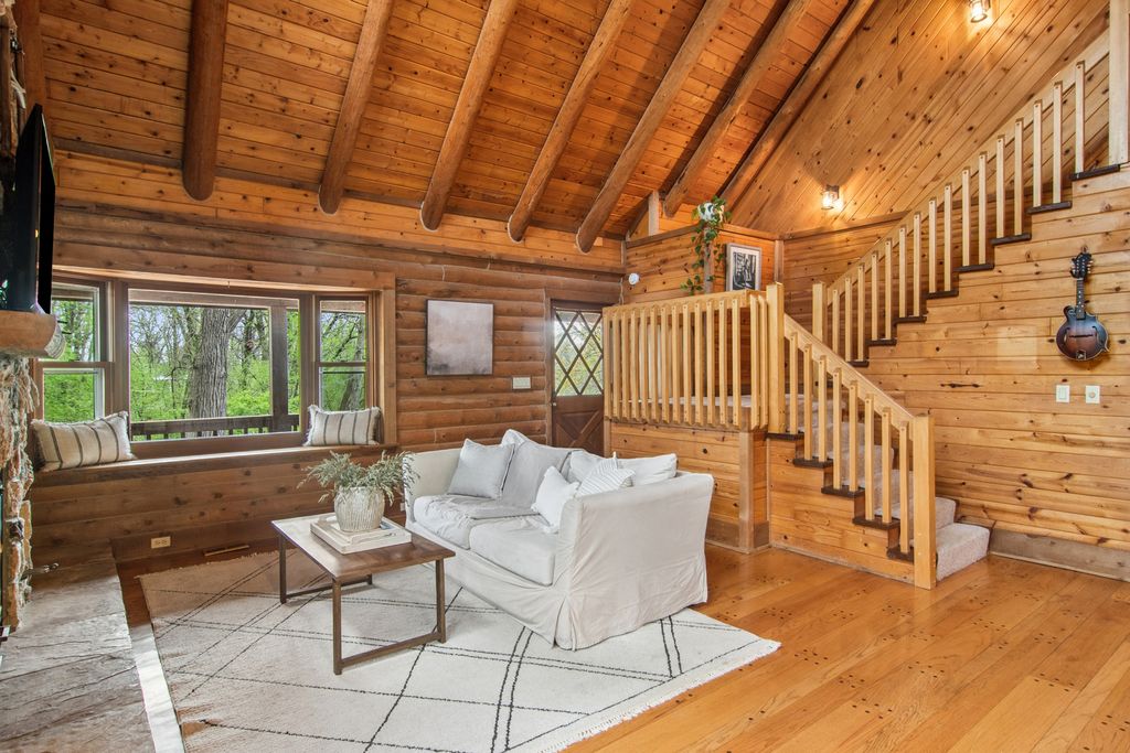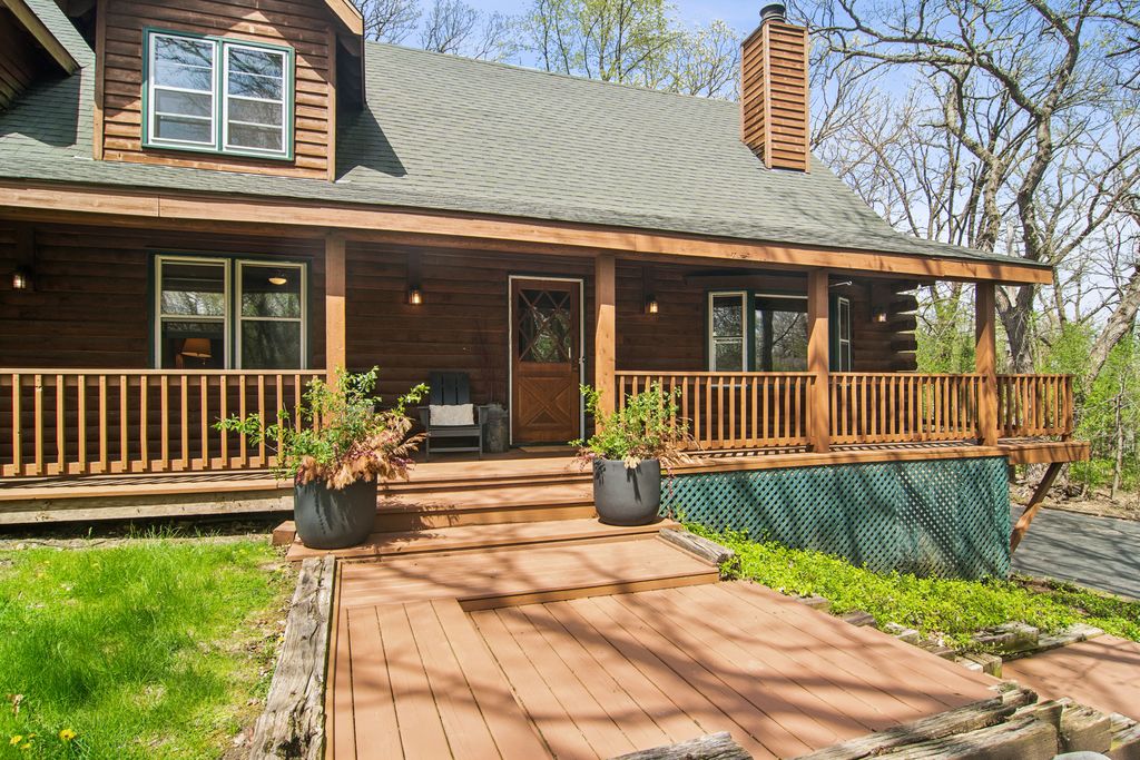 Just 40 miles from Chicago, this captivating log cabin on over an acre combines rustic charm with modern comforts, creating one of Illinois' most enchanting retreats. Tucked away in a tranquil, natural setting, it offers the perfect getaway from the hustle of city life-while keeping you conveniently close to it all. Step inside and feel instantly at home in the warm, inviting interior. Natural wood finishes and a stunning open-concept design make the space as beautiful as it is functional, seamlessly connecting the living, dining, and kitchen areas. The airy living room, with its soaring ceilings and rustic stone fireplace, is the heart of the home-imagine cozy evenings by the fire as autumn leaves fall outside. The kitchen is equally impressive, featuring ample counter space, generous storage, and everything you need to craft meals that gather loved ones around the table. Start your mornings with coffee on the spacious deck, surrounded by nature's serenity, or unwind in the recently renovated four-season porch, where you can soak in the changing beauty of every season-from the sparkle of winter snow to the golden hues of fall. The main floor boasts three comfortable bedrooms, a beautifully updated bathroom, a practical mudroom, and the convenience of first-floor laundry. Upstairs, the versatile loft is perfect for a home office or creative space, while the private primary suite offers a peaceful retreat, complete with its own sun porch for ultimate relaxation. Outside, the property continues to impress. The expansive deck and fully fenced area provide plenty of room for outdoor gatherings, pets, or simply soaking up the tranquility. The oversized two-car garage offers abundant storage, and the massive unfinished basement is a blank slate ready for your vision-whether it's a home gym, workshop, or additional living space. Nature lovers and adventure seekers will appreciate the location, with the Fox River just moments away for kayaking, paddleboarding, or enjoying breathtaking riverside sunsets. Boating enthusiasts will love the easy access to aquatic fun, while families will value the highly acclaimed Cary-Grove High School district. Commuters, take note: the Fox River Grove Metra station is just minutes away, making trips to Chicago a breeze. Whether you're searching for a weekend retreat or a full-time sanctuary, this serene property offers cozy cabin living with all the conveniences of modern life. Don't miss your chance to own this peaceful escape so close to the city!