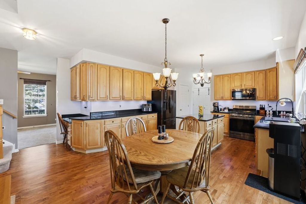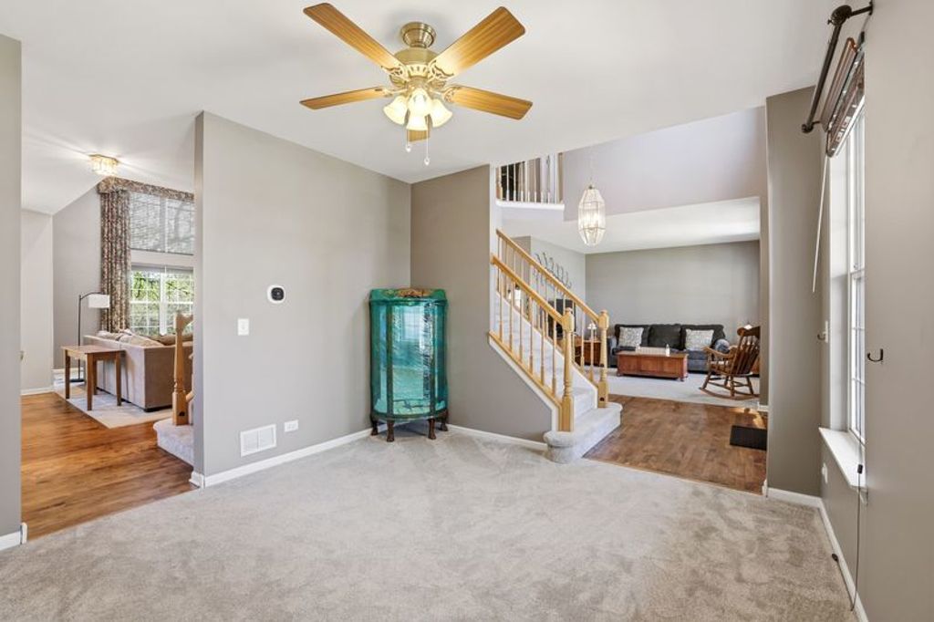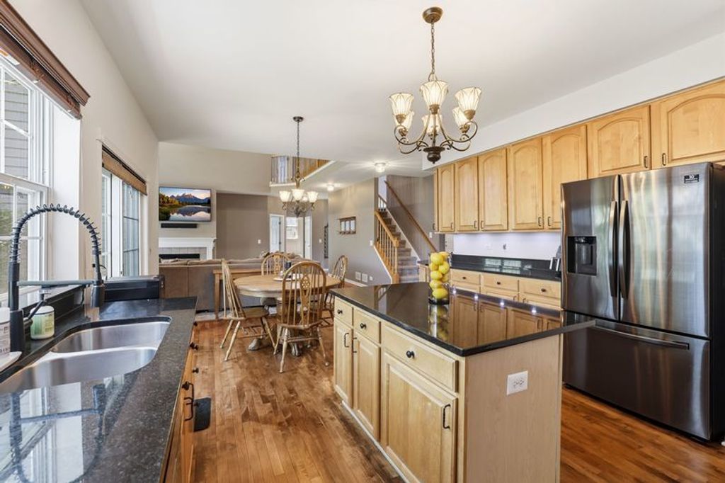 ** MULTIPLE OFFERS RECEIVED. SELLER REQUESTS HIGHEST AND BEST BY MONDAY, APRIL 27 AT 3PM ** Welcome to this impressive two-story residence offering over 3,700 square feet of beautifully finished living space, thoughtfully designed for both everyday living and entertaining. From the moment you step inside, the home feels open and inviting, with soaring ceilings, dual staircase and a graceful flow between rooms. A formal dining room and versatile living area frame the entry, providing flexibility for gatherings, a home office, or additional lounge space. The kitchen is both functional and timeless, featuring rich hardwood flooring new in 2023, 42" cabinetry, under cabinet lighting, granite countertops (2023), stainless steel appliances, a center island, pantry, and a built-in desk... perfect for managing daily routines. It opens seamlessly to a stunning two-story family room with a fireplace, creating a warm and welcoming focal point. The main level also offers a laundry room, 5th bedroom or office, along with a convenient half bath. Upstairs, you'll find four spacious bedrooms, including a well-appointed master suite with tray ceiling, two walk-in closets, dual vanities, a soaking tub, and separate shower. The finished basement expands the home's versatility with a large recreation area, additional living and dining space, a 6th bedroom with walk-in closet, and a full bath; ideal for guests and extended living. Outside, the backyard provides a comfortable setting for relaxing or entertaining under the lighted gazebo (2024). There is also a natural gas line for your grill! This home is ideally located near parks, schools, dining, shopping and entertainment. New furnace and A/C in 2021, New carpeting in 2024. **Please check out the virtual tour!**