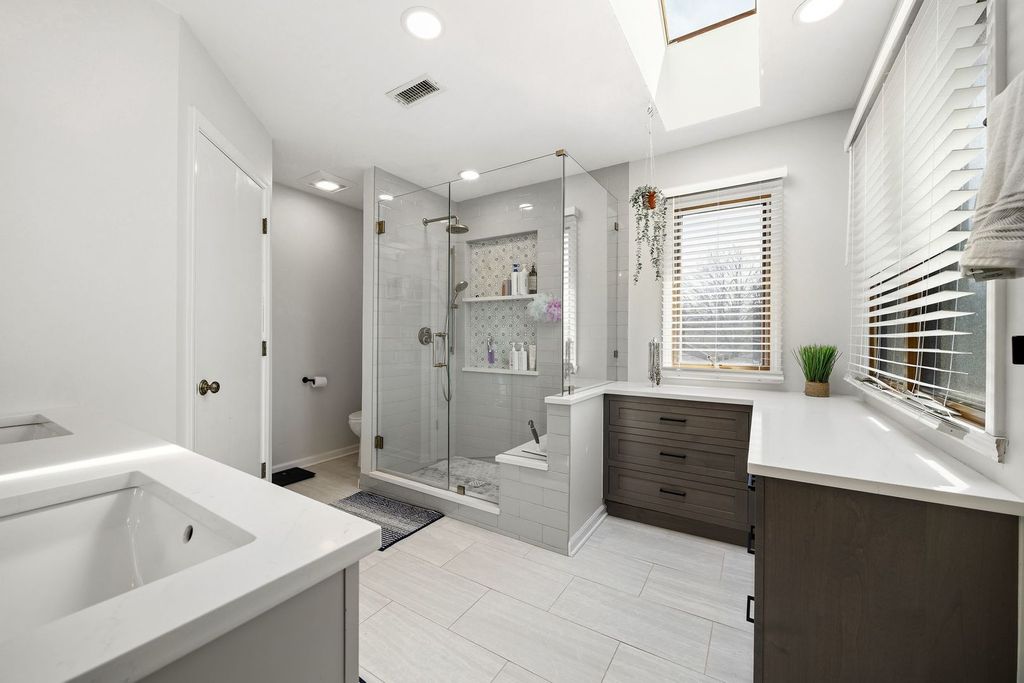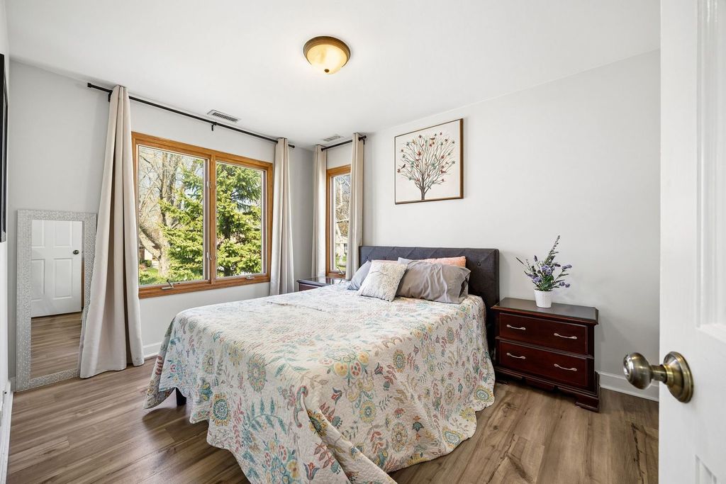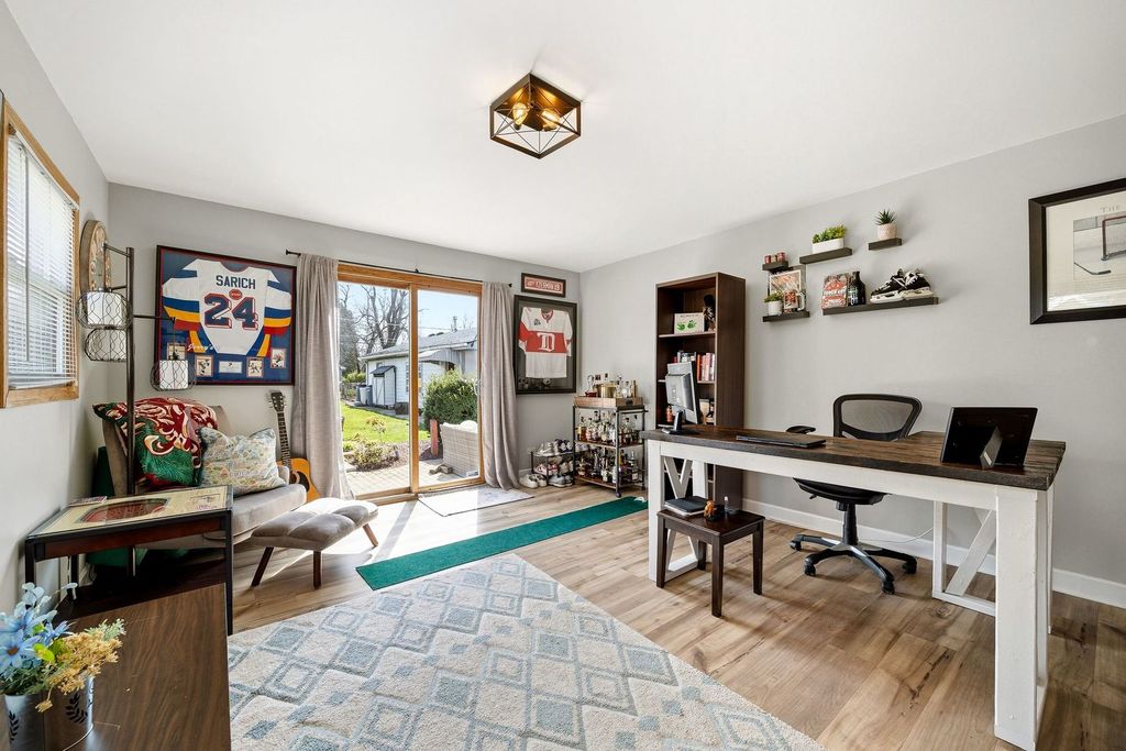 This home offers an ideal blend of comfort, space, and peace of mind. The main level is designed for both everyday living and entertaining, featuring a chef's kitchen with ample counter and cabinet space, a cozy family room with a wood-burning fireplace, and a bright, airy dining room. Expanding the first-floor living space is a generously sized bedroom with an ensuite bath - perfect for guests, a main-level primary suite, or a secondary living area - along with an additional office or fifth bedroom. Upstairs, you'll find two well-sized bedrooms, a full hallway bath, and a spacious primary suite with a beautifully renovated ensuite bathroom (2023). The large, fenced backyard is ideal for entertaining, complete with a paver patio, abundant green space, and garden beds. The impressive four-car tandem garage is insulated and equipped with a gas heater, making it perfect for a workshop, home gym, or hobby space. Recent updates provide added value and peace of mind, including a new upstairs HVAC system (2025), both water heaters replaced (downstairs 2022, upstairs 2023 with a tankless system), a full roof replacement (2026), luxury vinyl flooring throughout (2021) for a seamless look. We're ready to welcome you home!
