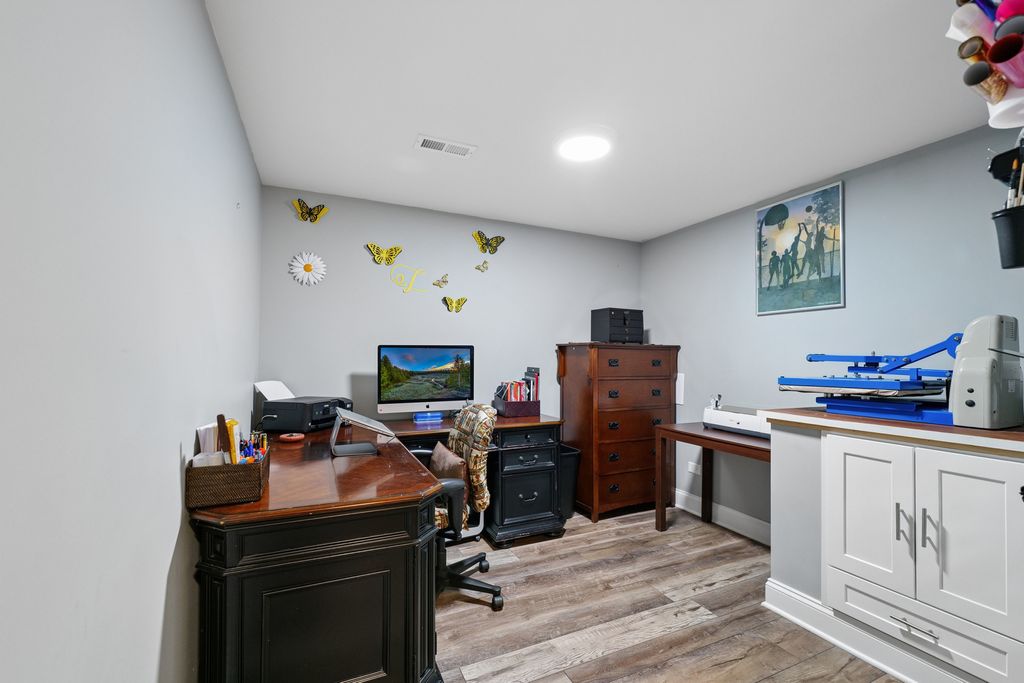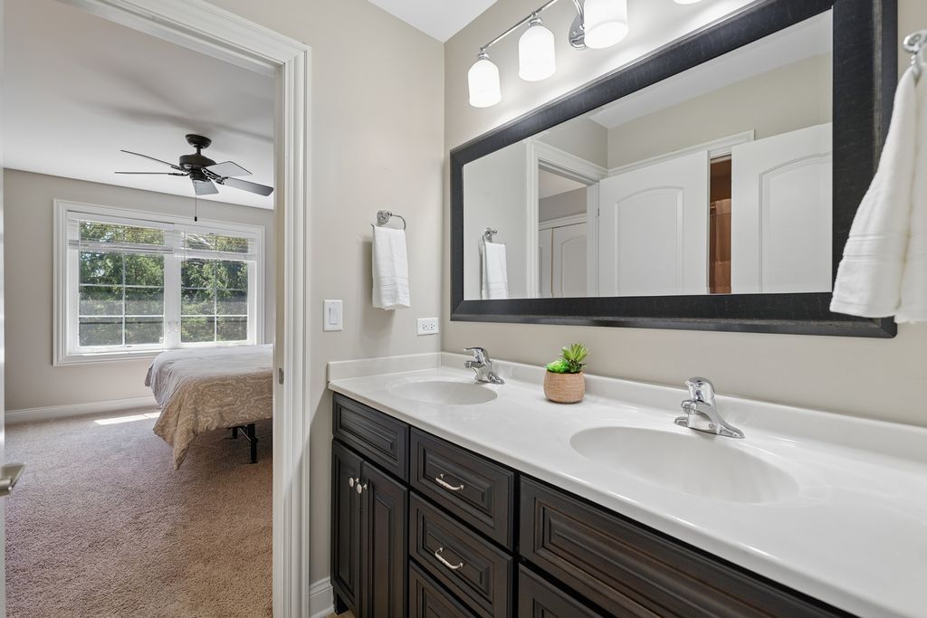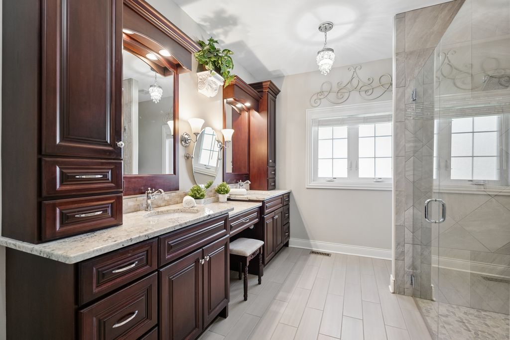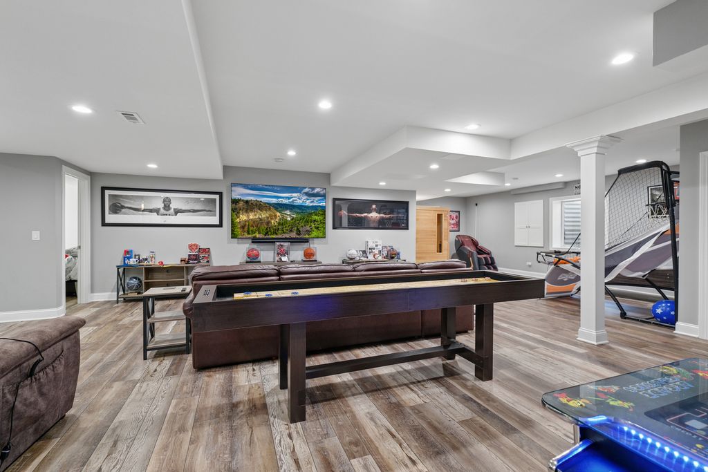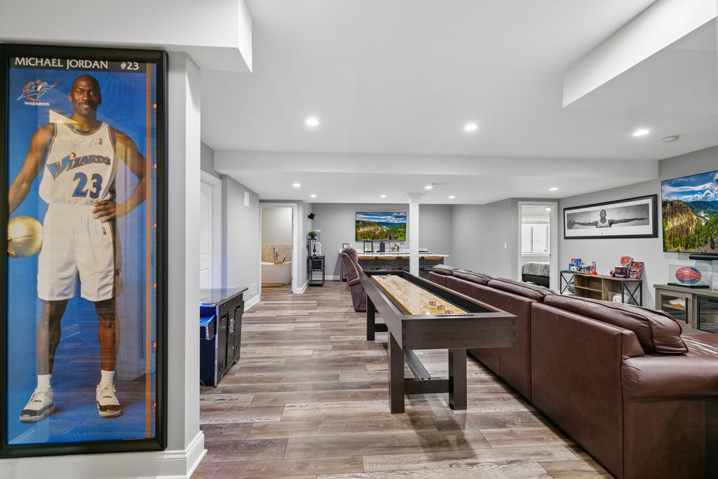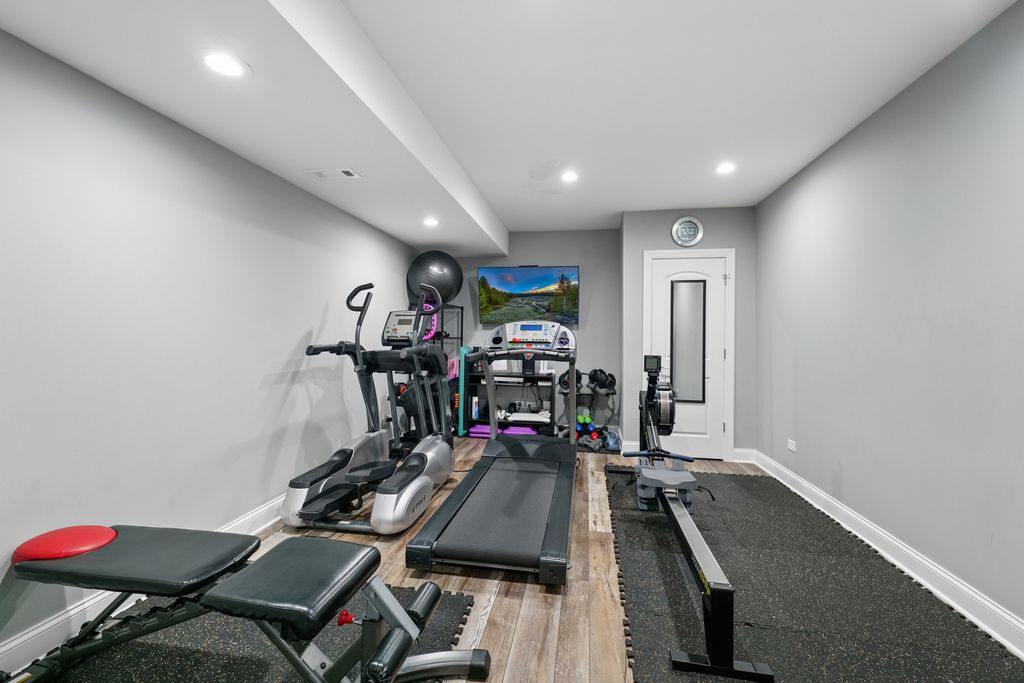 This property offers a rare blend of luxury, warmth, and exceptional value in one of Plainfield's premier custom communities. Surrounded by million dollar homes, this residence delivers high end finishes and a highly functional layout at a price significantly below new construction in similar developments. The moment you enter, the home feels bright and inviting, with floor-to-ceiling windows, vaulted ceilings, and newly added hardwood flooring that extends throughout the main level. The kitchen serves as the heart of the home, featuring a large island, high end stainless appliances including a newer refrigerator (2024) and dishwasher (2025), custom cabinetry, and beautiful granite countertops. Its seamless connection to the sunroom, family room and dining spaces creates an ideal setting for entertaining. The main-floor primary suite offers a peaceful retreat with a spacious bedroom, a luxurious bathroom with custom cabinetry, an oversized walk-in shower, and a generous walk-in closet. Upstairs, three additional bedrooms provide comfort and flexibility, including an en suite and a Jack-and-Jill arrangement. The finished basement adds more than 1,400 square feet of impressive living space, including a recreation and media area, a dry bar with two beverage refrigerators, a custom exercise room, a second office or craft room, private bedroom suite and a spa-like bathroom featuring a soaking tub and separate shower. The outdoor setting enhances the home's appeal, with a wooded area behind the property and a pond across the street ensuring lasting views. A deck with pergola, a stamped concrete and brick paver patio, a built-in stone fire pit, a dog run with artificial turf, and professional landscaping, including fruit trees and a strawberry patch create a serene and inviting outdoor oasis. This home offers an elevated lifestyle inside and out with the added bonus of outstanding value.