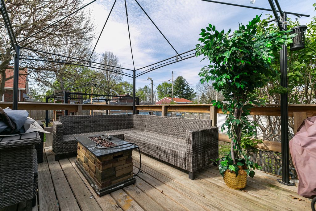 This home has a multitude of desirable features. The home was fully remodeled in 2016 with a new kitchen w/granite, bath, furnace, central air, roof, windows and floors! Vinyl siding installed in 2023 and water heater in 2025. The cozy 4 season room with wood stove leads you to a fully fenced yard with raspberry bushes and peach trees. Enjoy the outdoor living space with an impressive deck featuring a propane fire pit, a hot tub, and a newer pool. The play set will also remain on the property. Don't forget the 3 car garage and a shed! Situated on a large corner lot spanning almost half an acre, this property offers ample space and modern amenities for a comfortable lifestyle.
