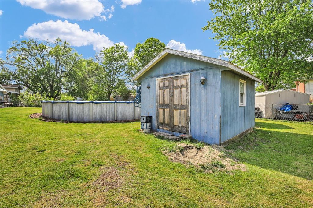 Tri-level home offering 3 bedrooms and 2 full baths, built in 1958 and situated on a large, fenced lot. The functional layout includes a loft overlooking the living room, adding an open feel to the main living space. The finished lower level provides and additional bedroom, as well as a family room, laundry area, and walk-out access to the backyard. Outdoor features include a patio, large above-ground pool (conveyed as-is), pool shed, and a garden shed, offering multiple options for storage and outdoor use. The fenced backyard provides abundant space to relax and enjoy.