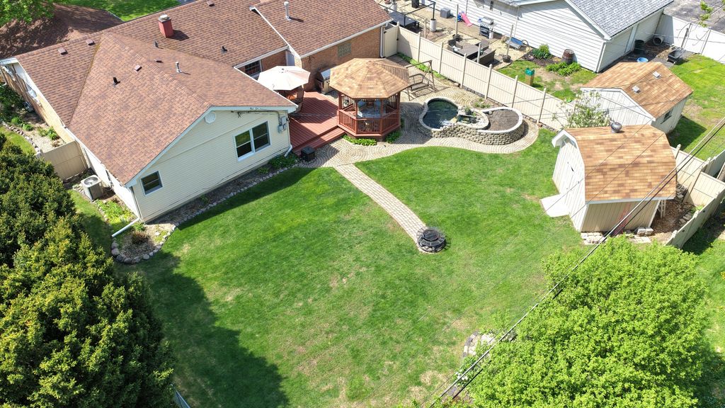 Welcome to this beautifully expanded 1,708 square foot brick ranch that perfectly blends comfort, space, and thoughtful upgrades throughout. As you step inside, you are greeted by a spacious and inviting living room that sets the tone for the rest of the home, offering plenty of room for both relaxation and entertaining. The heart of the home is the large eat-in kitchen, featuring sleek black stainless steel appliances, an abundance of warm maple cabinetry, durable Corian countertops, and stylish recessed lighting that creates a bright and functional cooking and dining space. The thoughtfully designed expansion enhances the home with an added recreation room, ideal for gatherings, hobbies, or a cozy retreat, along with a private master suite. The master bedroom offers a peaceful escape and includes its own dedicated bath, complete with an updated vanity and a modern shower with a glass door. Three additional bedrooms provide flexibility for family, guests, or a home office, while the second full bathroom has also been updated and features a whirlpool tub and shower combination. Throughout the home, you'll appreciate the timeless elegance of solid wood six-panel doors and quality craftsmanship. Step outside to discover a truly exceptional backyard oasis, fully fenced for privacy and designed for both relaxation and entertaining. Enjoy warm evenings on the wood deck with a charming gazebo, host gatherings on the brick paver patio equipped with a Viking natural gas grill, or unwind by the tranquil koi pond stocked with beautiful fish. A firepit adds to the ambiance, and a 12' x 10' shed on a concrete pad provides additional storage. Completing the package is a two-car attached heated garage for year-round convenience. Major updates offer peace of mind, including a new roof installed just two years ago, a brand-new furnace and A/C system in 2025, a new oven in 2025, a dishwasher that is six years old, and a refrigerator that is five years old. This home truly has it all-space, style, and a backyard retreat you'll never want to leave.