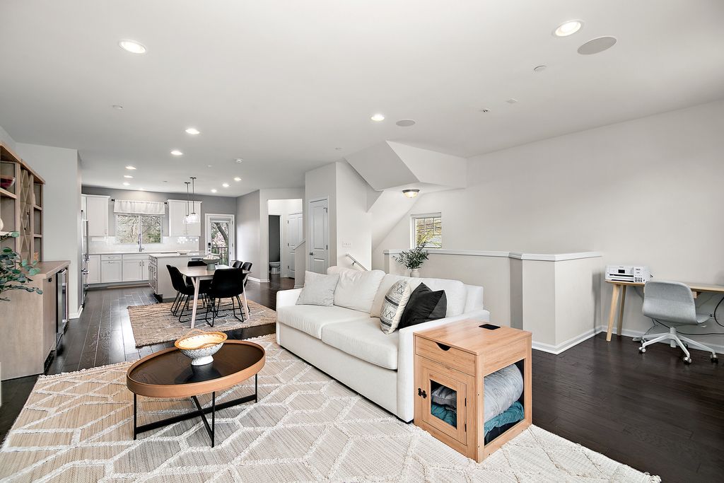 Bright, open, and impeccably maintained, this corner-unit townhome offers elevated living just minutes from downtown Naperville and within highly sought-after Naperville School District 203. The main living space truly shines. With high ceilings and abundant natural light from its corner exposure, it feels both open and welcoming. The kitchen is modern and thoughtfully finished, featuring quartz countertops, soft-close white cabinetry, a classic subway tile backsplash, stainless steel appliances, and generous prep and storage space. It flows seamlessly into a spacious dining area and living room-perfect for both everyday living and hosting friends and family. Just off the kitchen, step out onto your private deck, an easy spot for morning coffee or unwinding at the end of the day. Upstairs, you'll find three well-sized bedrooms, including a primary suite with a large walk-in closet and private ensuite bath. Laundry is conveniently located on this level, along with a second full bathroom, making day-to-day living simple and efficient. The lower level offers a versatile flex space that can easily function as a fourth bedroom, home office, additional living area, playroom, or gym-whatever fits your lifestyle best. From here, you also have access to a private patio, offering more outdoor space to enjoy. Additional features include an attached two-car garage with epoxy flooring and an EV charger, custom Hunter Douglas window treatments throughout, and well-maintained mechanicals. A home that's been truly cared for, in a location that's hard to beat. Welcome home!
