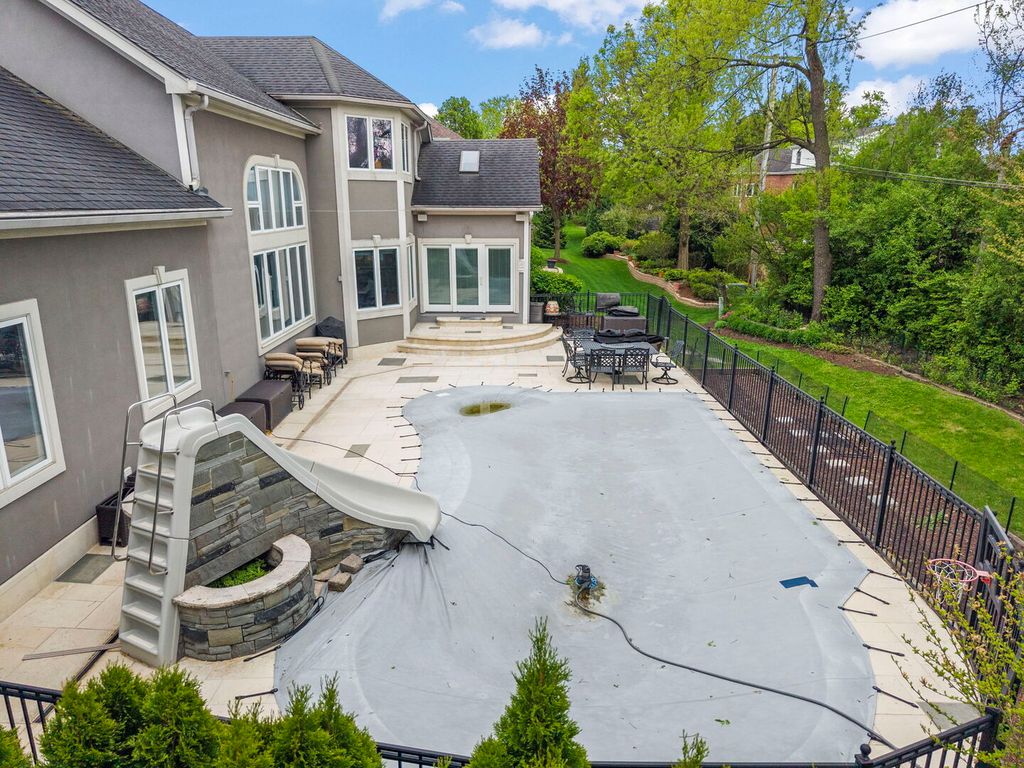 Welcome to Canterbury Woods of Glen Ellyn. This beautifully maintained and thoughtfully designed resort-style home blends timeless elegance with modern comfort. Nestled on a tree-lined cul-de-sac, the striking curb appeal features mature landscaping, a stately facade, and a spacious paver driveway leading to a three-car attached garage. Step inside to a bright and inviting interior highlighted by soaring ceilings, abundant natural light, and refined architectural details with over 5000 square feet! The main living area showcases a dramatic floor-to-ceiling fireplace with custom millwork and built-in bookcases and entertainment center, creating a warm and sophisticated focal point. Large windows and an open flow make this space perfect for both relaxing and entertaining. Rare first floor Primary Retreat featuring a Drury Design (Glen Ellyn kitchen and bath designer) Luxury Spa Bath w/lavish oversized full body spray shower and 2 WICs! The heart of the home is the expansive kitchen, complete with crisp white cabinetry, generous counter space, stainless steel appliances, and a large peninsula with seating. It opens seamlessly to the dining area and adjacent living spaces, offering a perfect layout for gatherings and everyday living. The tiled sunroom with 2nd powder room were designed to accommodate pool entertaining. Upstairs you'll find 4 well-proportioned bedrooms (1 ensuite, 2 with dual entry bath) and flexible living areas designed to suit a variety of lifestyles. Lower level boasts incredible 2nd Family Room with wet bar and built-in shelving, desk and entertainment center + sound dampened, insulated music room + full bath + ample storage + an unbelievable 1100 square feet of flex space!! The resort-like backyard features an enjoyment easement extending the backyard 1 acre to the pond behind. The one acre is maintained by the properties on the lake but is only for the use of the three homes on Canterbury Ct that are adjacent to the property. The easement includes use of the pond and land - pond is stocked and small water craft can be used to fish. The pond also freezes in the winter for skating! Close to 355 & I88, Shopping, Restaurants, Morton Arboretum & Village Links Golf Course! Award Winning Glenbard South High School!!