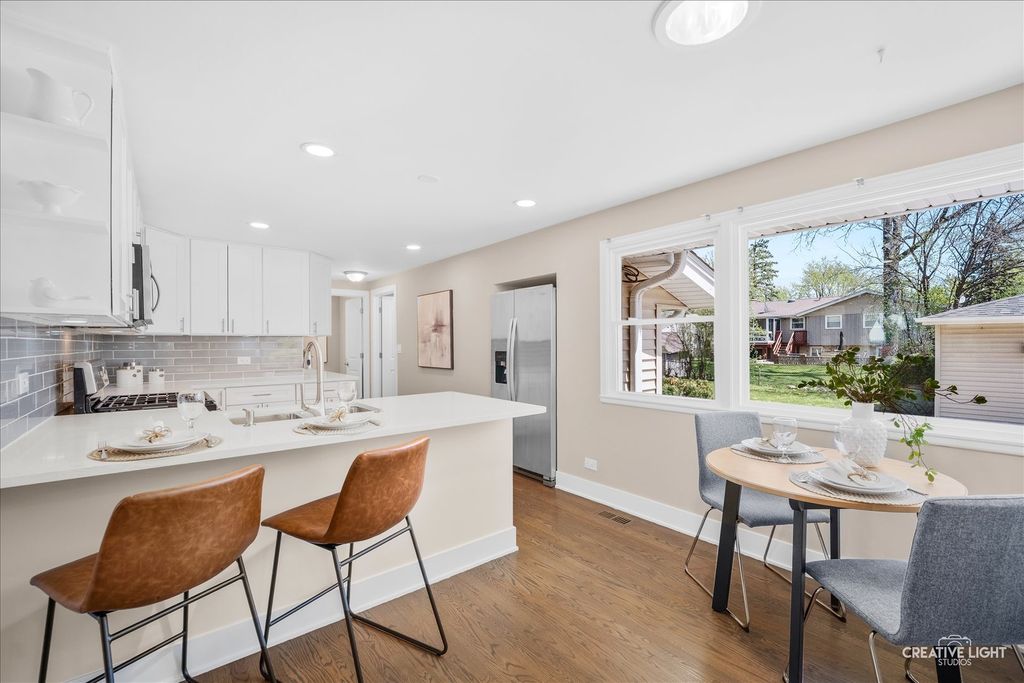 Move-in ready and beautifully updated in a prime Schaumburg location, featuring brand new windows (2026) and just a short walk to highly rated Buzz Aldrin Elementary. Inside, you'll find a bright and inviting layout with hardwood flooring throughout, where modern updates and everyday functionality come together seamlessly. At the center of the home, the kitchen features crisp white cabinetry, beautifully finished countertops, a stylish tile backsplash, and updated appliances, creating a clean, modern space that supports both everyday living and entertaining. The finished basement adds valuable additional living space, offering flexibility for a recreation area, home office, or entertaining, while a separate unfinished area provides the perfect setup for a workshop or additional storage. The main living areas provide a comfortable flow with great natural light, while the bedrooms offer flexibility for family, guests, or a home office setup. Ideally located just a short walk to highly rated Buzz Aldrin Elementary School and only 1.5 miles from Schaumburg High School, this home offers convenient access to some of the area's top-rated schools. The backyard offers a spacious setting to enjoy the outdoors, whether you're hosting gatherings, relaxing, or simply taking advantage of the open green space. Extensive updates throughout the home enhance its true move-in ready appeal, including brand new windows and sliding patio door (2026), HVAC and roof (2018), water heater (2023), sump pump with battery backup (2023), garage door (2023), and washer and dryer (2024). A thoughtfully updated home offering comfort, convenience, and value in a highly desirable Schaumburg location.