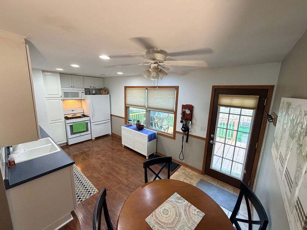 Ready to move in ranch home on corner lot with mature trees, new fenced yard, large 2.5-car detached garage with a new opener. 3 bedrooms 1 bath on a crawl basement. New roof in 2017, new stove in 2026, new breaker panel 2026, plus many updates in the last 10 years. Walk to grade school. Huge deck for BBQs, entertainment, with plenty of fenced yard space for pets and kids to play. Won't last long!
