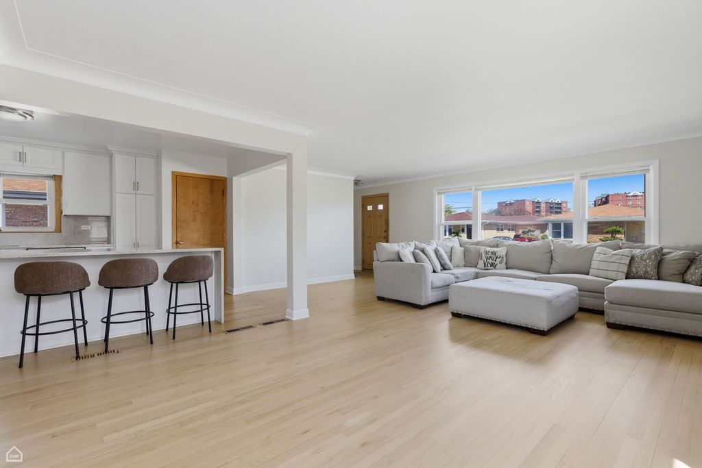 Set on a quiet residential block, this beautifully maintained ranch-style home blends space, comfort, and modern updates in a highly desirable location. Offering approximately 2,500 square feet of living space, this move-in ready home features 3 bedrooms and 2.5 baths, along with two additional versatile rooms in the finished basement, perfect for a home office, gym, guest bedroom, playroom, or flex space to fit your lifestyle. The heart of the home is the recently renovated modern kitchen, showcasing bright marble countertops, stainless steel appliances, and updated finishes, ideal for both everyday living and entertaining. Fresh paint throughout enhances the home's clean, turnkey appeal. The finished basement adds even more living space, featuring a large recreation area, cozy wood-burning fireplace, and a wet bar, perfect for hosting. The lower level also includes a dedicated laundry room, ample storage, and additional rooms that can easily function as a home office, workout room, media room, or guest suite. The primary suite offers a private bath with a walk-in shower, creating a comfortable retreat. Additional highlights include a 1-car garage, functional layout, and generous living space throughout. Enjoy the benefits of suburban living in Chicago, located on the Northwest Side with a quiet neighborhood feel while still being close to shopping, restaurants, parks, schools, and major highways for an easy commute.