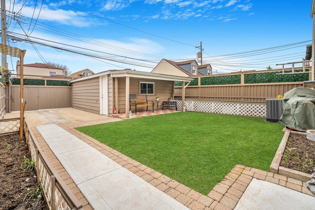Charming Tudor-style brick bungalow nestled on a quiet, tree-lined street in the highly desirable Belmont Cragin neighborhood! This beautifully maintained detached single-family home offers the perfect blend of classic character and modern updates. Step inside to an inviting open-concept layout featuring a seamless flow between the living room, dining area, and a stunning chef's kitchen complete with premium cabinetry, granite countertops, and newly finished hardwood floors throughout-ideal for both everyday living and entertaining. The main level includes two generously sized bedrooms, a full bathroom, and a spacious family room overlooking the expansive, fenced backyard, providing the perfect setting for gatherings or relaxing evenings. Upstairs, retreat to a private primary suite featuring a full bathroom, walk-in closet, and additional storage space, including an extra closet for maximum functionality. The finished basement expands your living space with two additional bedrooms, a large recreation/family room currently used as a workout area, a dedicated laundry room with side-by-side washer and dryer, and ample storage throughout. Enjoy outdoor living in the private backyard with a full privacy fence-perfect for entertaining-along with a two-car brick detached garage with side port offering plenty of parking and convenience. Located in vibrant Belmont Cragin, you'll love the close proximity to parks, schools, shopping, dining, and easy access to public transportation and major expressways. This move-in-ready home truly has it all-space, style, and location-schedule your showing today! Home being SOLD "AS IS". Home updated in 2018.