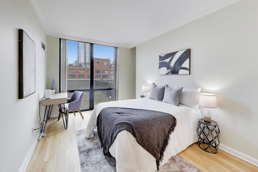 A rare opportunity in the heart of River North, this expansive 1,400 sq ft residence delivers a combination of space, layout, and outdoor living that is increasingly hard to find, especially at this price point. The true differentiator is the oversized private terrace, which is an exceptional outdoor space with sweeping, unobstructed southeast corner views offering a seamless extension of your living and entertaining space that simply doesn't exist in most comparable units. Inside, the home offers the same level of appeal. Thoughtfully designed with excellent flow, the living and dining areas are anchored by a corner fireplace and finished with beautiful red oak flooring. Both spaces look directly out over the terrace, so even while indoors, you and your guests enjoy the same stunning views-an ideal setup for effortless entertaining. The updated kitchen features stainless steel appliances and a breakfast bar, blending function and style for everyday living. Two ensuite bedrooms are positioned in a split layout for maximum privacy, complemented by a well-placed powder room. In-unit laundry, generous closet space, and meticulous maintenance throughout make this a true move-in-ready home. Set within a full-amenity building with door staff, fitness center, sundeck, party room, and on-site management, and located just steps from the riverwalk, new park space, East Bank Club, top dining, and expressways. This is River North living at its best. For buyers watching the market, the value here stands out immediately: Outdoor space, condition, and location, all offered at a price that compares favorably to current inventory. Properties with this combination do not last. Deeded garage parking space for $30k.