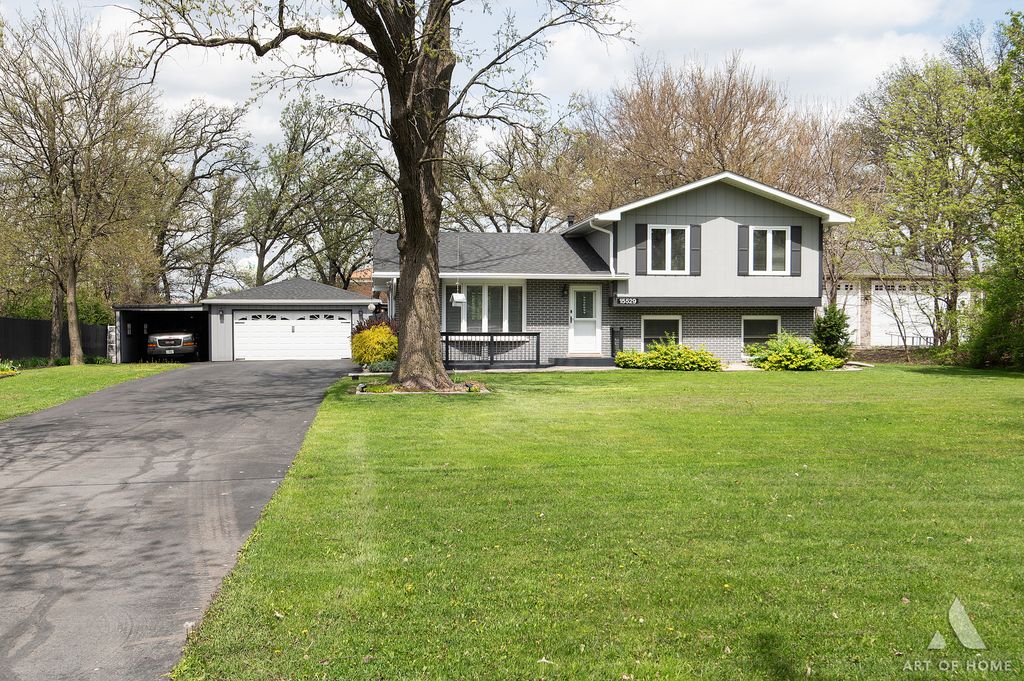 Split level updated in 2020 located on over 3/4 acre lot in unincorporated Lemont with trees, expansive ,covered brick paver patio. Rare opportunity for contractors, construction company any businesses with vans, trucks offering 6 spaces this includes 3 car garage and long side driveway for 3 vans. This home features gorgeous kitchen with elegant cabinetry, new stainless-steel appliances, nice backslash and island. Formal living room and dining room combine with the kitchen. Upper level offers cozy master suit with walk-in closet and access to huge new deck for your entertainment and leisure, two additional bedrooms and a full beautiful bathroom. The lover level offers family room, elegant new bathroom and big, comfortable laundry room. Updates included new roof, gutters (6 Year),all appliances in the kitchen are new, all new lights, both bathrooms are new,balcony(deck) is also new .All trims and doors are new. Elegant blinds in whole house stays. In the front of the house you have nice porch for your morning coffee.The whole house is freshly painted inside and out. This huge, fenced backyard is every owner's dream .