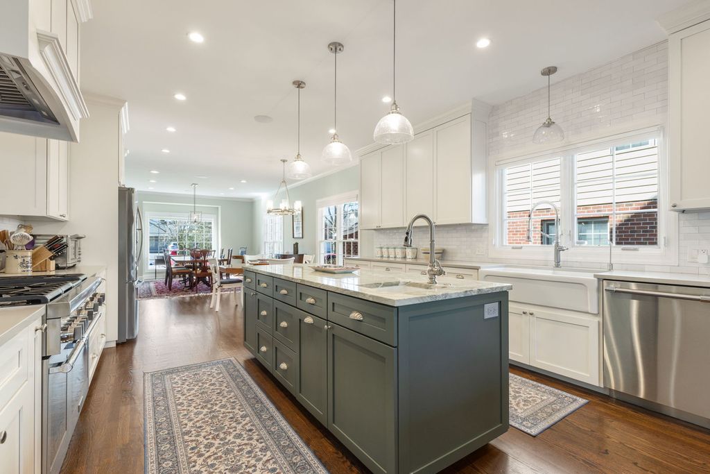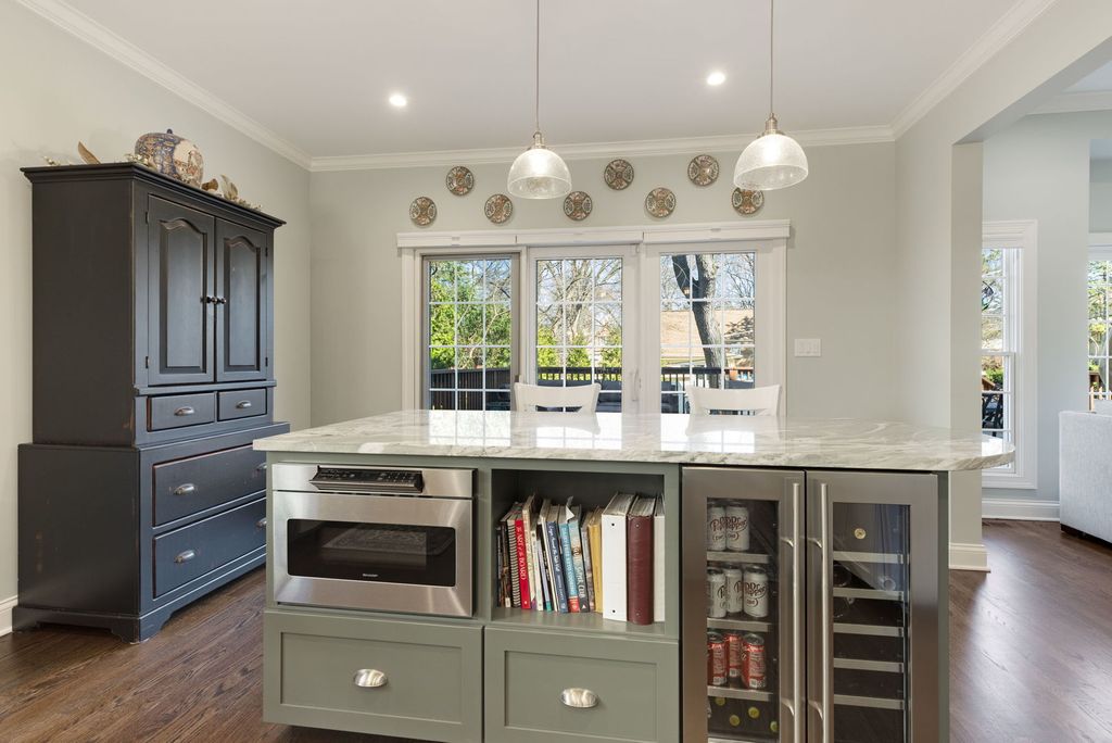 Amazing chef's kitchen is the cornerstone of this glorious light-filled home filled with carefully curated touches and wonderful spaces! Bluestone patio and front porch welcome you to the two-story foyer and beautiful staircase to the second floor. Step through a wide doorway to the large dining room spilling into the fantastic chef's kitchen created by the homeowner in a 2022 rehab. Custom cabinetry, high-end appliances, a huge island for food prep with a prep sink, drawers for storage, luxurious granite countertop is flanked by two cooking surfaces with more custom cabinetry with quartz countertops, a porcelain farmhouse sink, Thermador chef's range with pot-filler, and an RO filter. The second island hosts seating area, the microwave, additional cabinetry and a shelf for cookbooks. The kitchen flows seamlessly into the great room with fieldstone fireplace and raised hearth, a buffet/serving area with more custom cabinetry and quartz countertop. Sliding doors from the kitchen lead to the new, large deck and another door opens from the great room to a covered patio - with a bluestone patio connecting the covered patio to the deck! The home office has sliding doors to the covered patio. A mudroom and half bath complete the first floor. Head up the stairs to the second floor to find a wonderful primary suite with fireplace, trayed ceiling, custom blinds, a walk-in closet and a large primary bath. The second bedroom has a huge walk-in closet and ensuite bathroom. Bedrooms three and four are generously sized with a jack-and-jill bathroom connecting them. The third floor features the fifth bedroom with ensuite bathroom and a bonus room perfect for sitting, home-office, library, or so many other purposes. The third floor loft is large enough for an additional sitting area. The basement is fully finished with a generous recreation room with built-in cabinetry around the television, beautiful wooden bar area with under-counter fridge all open to a game room with pool table. French doors lead to an exercise room. Basement also includes a full bathroom and storage room. Both the interior and exterior of the home have so many wonderful updates! Since purchase in 2021 Seller has added the following upgrades/features (printable list available in Additional Information and in the home when viewing)! Complete high-end Kitchen renovation - 2022, New Roof - 2021, Complete interior painting - 2021/2022, Exterior painting - 2023, Deck built - 2021, Bluestone front porch - 2023, Bluestone front patio - 2023, Bluestone rear patio - 2023, Professional landscaping installed front/back yards- 2023, Back yard accent lighting installed - 2023, Irrigation system installed- 2023, New fence - 2024, Tankless water heater - 2021, New Sump Pump - 2021, New Washer/Dryer - 2026 , Whole house Generac generator - 2022, Storage lift in garage, Lutron lighting 2022, Keyless entries at all doors, Hunter-Douglas custom blinds 1st floor & primary bedroomFantastic walk-to location with elementary, middle school a block away, town, train, and pool easy walk-distance as well. This home welcomes warmly, lives beautifully, and is a joy to visit!