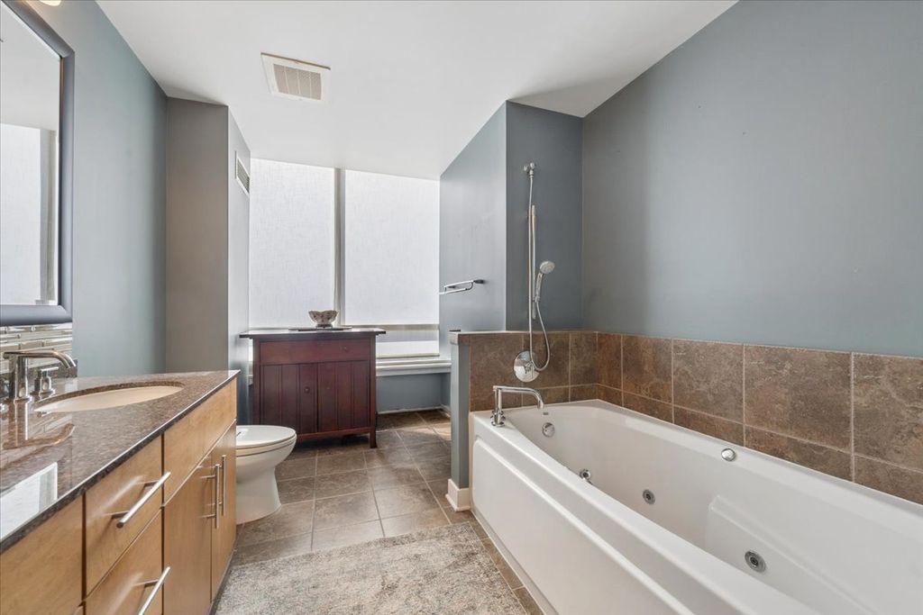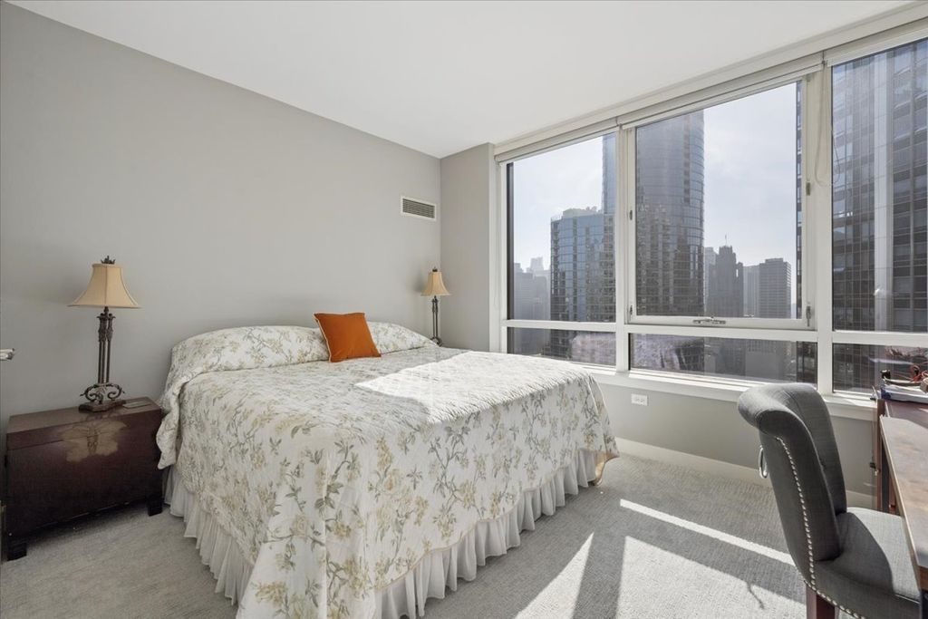 Breathtaking lake, river, and city views await from this premier corner unit! This gorgeous home has been well cared for and is truly move-in ready. Excellent floor plan with an open living and kitchen layout. The spacious primary suite features a walk-in closet and a bath with dual vanities, a Jacuzzi tub, and a separate shower. Additional highlights include organized closets, custom window treatments, and full-sized in-unit laundry. Enjoy full amenities in this luxury building, including a 24-hour doorman, attached garage, gym, outdoor pool and hot tub, work room, party room, and storage. Steps from the lakefront, Whole Foods, Target, and restaurants. Conveniently located near Northwestern Memorial Hospital. One heated garage parking space additional $45k.