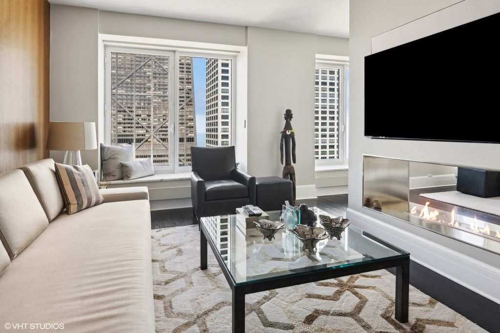 This exceptional home exudes elegance and refined style featuring renovations completed with premium materials. Its unique design stands apart, offering an unparalleled living experience.This unit boast spectacular views of the city's skyline and Lake Michigan The kitchen dazzles with Brazilian granite, while acid etched glass adds a modern touch. A stunning 2500+ sq. ft. three- bedroom now masterfully transformed into a two-bedroom with den offering breathtaking East/North/West views. Upon entry you are greeted by an elegant foyer setting the tone for the rest of the condo's serene and sophisticated atmosphere. Luxurious bathrooms boast custom vanities and the home is completed with a stunning one-of a kind fireplace. Olympia Center, a luxury high-rise in Chicago's Streeterville neighborhood situated just off the Magnificent Mile close to world class shopping, dining and cultural attractions such as The Museum of Contemporary Art, Water Tower Place, and 900 N. Michigan Ave, all within walking distance. The building offers a range of amenities including a fitness center, indoor pool/spa, party room, 24 hour door person. Welcome Home!
