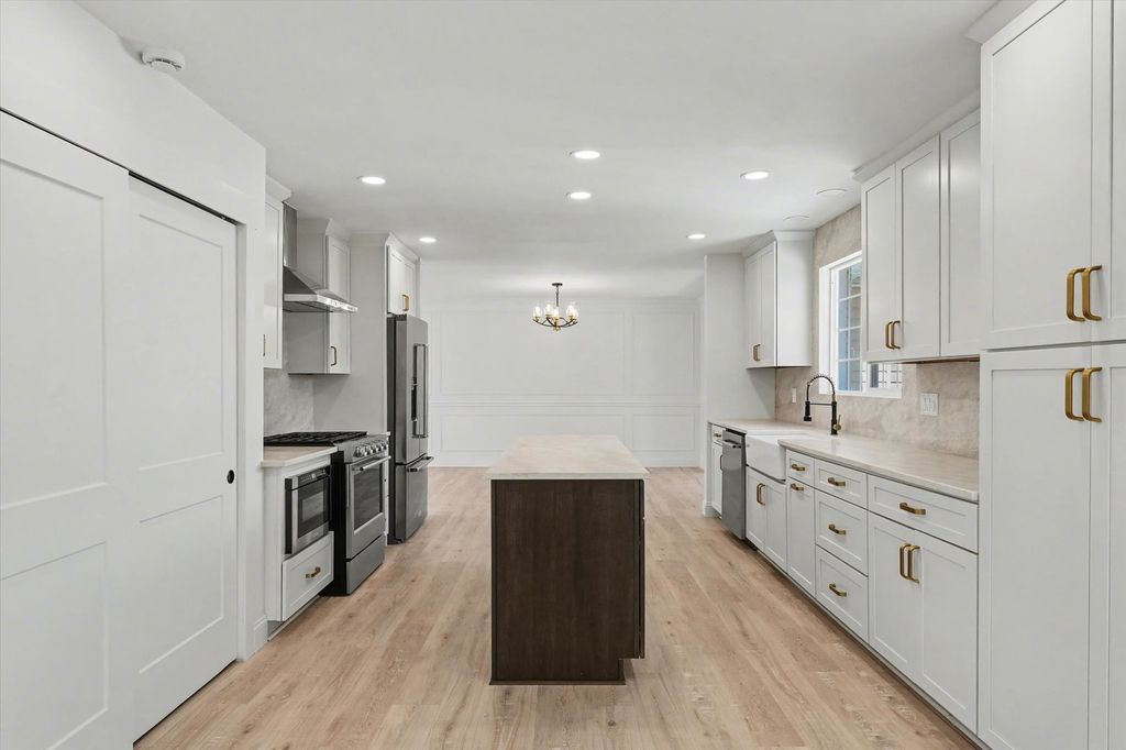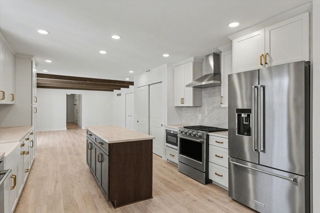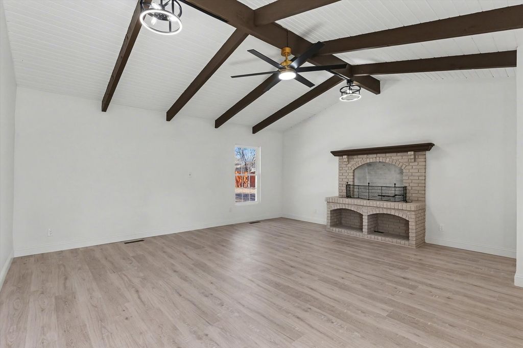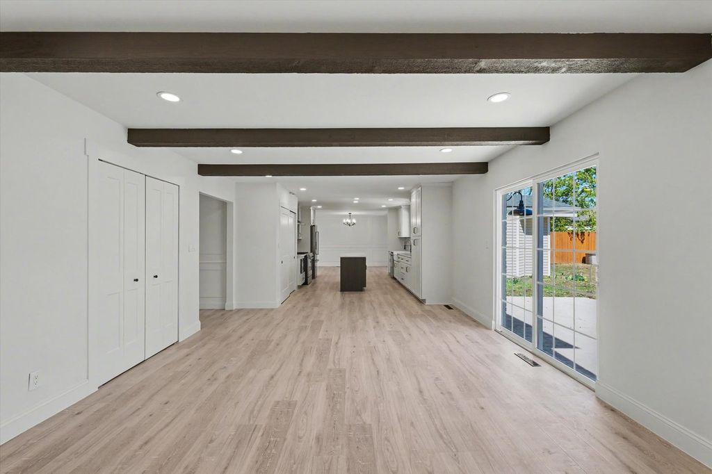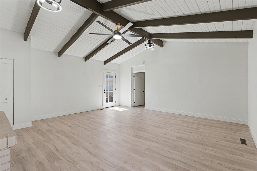 Welcome to one of Urbana's most exciting and up-and-coming neighborhoods, just steps from the newly renovated Urbana Country Club, where resort-style amenities, premier golf, and elevated lifestyle living are redefining the area. This fully renovated 4-bedroom, ~3,000 sq ft home blends modern design, character, and flexibility. The open-concept layout features wide-plank flooring, abundant natural light, and exposed beam ceilings that create a warm, elevated feel. The main living space is anchored by a statement tiled fireplace, while multiple living areas provide versatility for today's lifestyle. The redesigned kitchen is a standout with a large island, custom cabinetry, quartz countertops, designer hardware, and high-end stainless appliances including a gas range with vent hood, ideal for everyday living and entertaining. A vaulted-ceiling flex space with beams and a brick fireplace offers the perfect setup for a secondary living area, recreation space, or a private in-law suite (Bedroom 4) with its own exterior access. The primary suite delivers a true retreat with a fully built-out walk-in closet and a spa-inspired bath featuring a custom tiled walk-in shower, black-framed glass doors, dual vanities, and upscale finishes. Additional updates include all new Pella windows, mechanicals, a fenced backyard, stamped concrete patio, and expanded concrete driveway space, along with a dedicated office/study filled with natural light. This home offers a rare combination of thoughtful renovation, flexible living space, and a prime location in one of Urbana's fastest-growing areas.