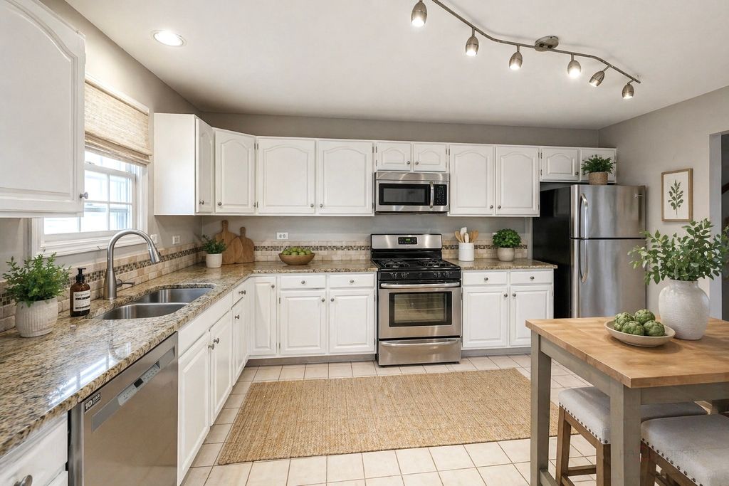 Brand new basement completed in April, new first-floor windows coming soon! Beautiful end-unit townhome located in the highly sought-after, award-winning District 103 and Stevenson High School district. This 3-bedroom, 2.5-bath home offers a spacious and thoughtfully designed layout. The bright, open kitchen features cherry cabinetry, granite countertops, and SS appliances. It flows seamlessly into the inviting living room with gleaming hardwood floors and the adjacent dining area, which opens to a private brick paver patio surrounded by mature trees. A charming family room with French doors and a built-in bookcase provides the ideal space for a home office or study. Upstairs, the generous primary suite includes a walk-in closet and a private ensuite bath with a whirlpool tub and separate shower. Two additional well-sized bedrooms share a full bath. Bathrooms with rich cherry cabinetry, vessel sinks, and natural stone countertops. The newly finished basement, with modern finishes, adds versatile living space, perfect for recreation, entertaining, or hobbies. Additional updates include furnace (2023), A/C (2024), upcoming new windows in the first-floor dining and family rooms, fresh paint throughout (2025/2026), recessed lighting (2026), hardwood floors (2017), washer (2020), dishwasher (2022), garage door motor/springs (2023/2025). Plenty of guest parking space and prime location with easy access to I-94. Situated across from the wooded beauty of Balzer Park-featuring trails, tennis courts, a playground-and a pond great for fishing! This home offers the perfect blend of comfort, style, and convenience.
