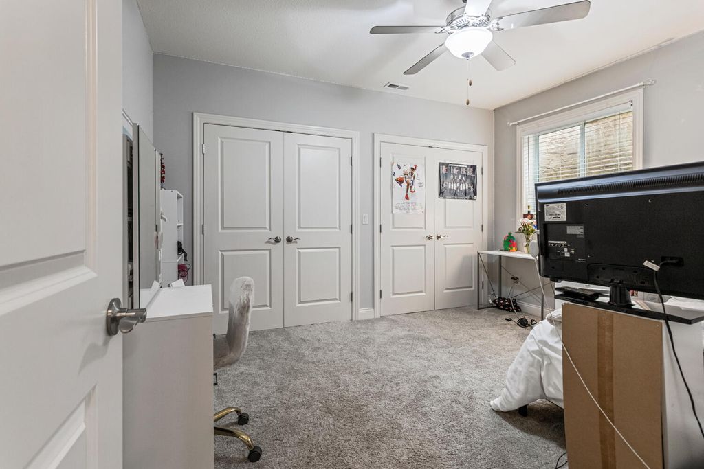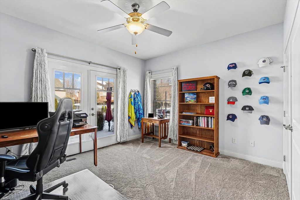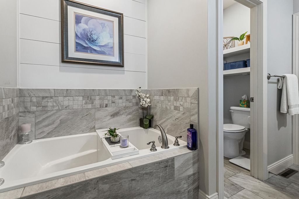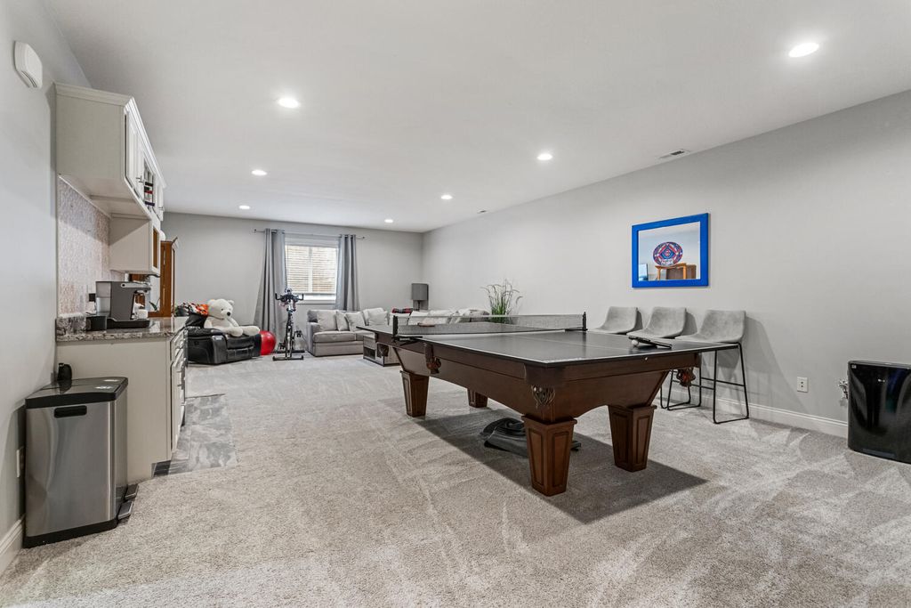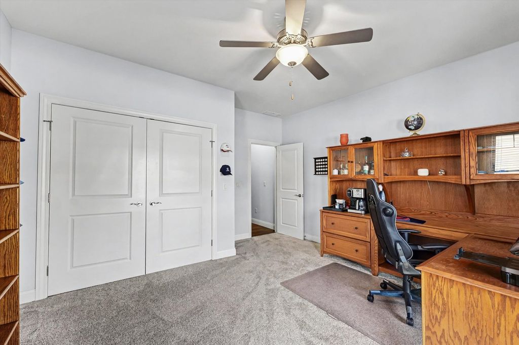 This beautifully maintained, better-than-new ranch home offers the ideal blend of thoughtful design, finished amenities, and an unbeatable location close to top-rated schools, shopping, and dining-everything today's busy households value most. With 4 bedrooms, 4 full baths, a partially finished basement, and a 3-car garage, the open-concept layout is both functional and inviting. The cathedral-ceiling great room centers around a cozy gas-log fireplace and flows seamlessly into a dedicated dining area-perfect for everyday living and entertaining alike. The kitchen is a true gathering space, featuring a large granite and shiplap island, stainless steel appliances, abundant prep space, and hardwood floors throughout the main level. Three bedrooms are located on the main floor, including a spacious primary suite with a spa-like bath offering a soaker tub, walk-in shower, private toilet area, and generous walk-in closet. Practical details elevate daily life, including a separate laundry room with folding space and a welcoming mud/drop zone off the garage complete with bench and coat hooks. A main-floor mother-in-law suite adds flexibility, offering its own private bath and French doors that open to a peaceful private patio. The finished basement expands your living space with a large fourth bedroom, full bath, movie room, built-in desk area, and an impressive 1,238 sq ft of unfinished storage-complete with multiple storage racks, something rarely found in new construction. Step outside to enjoy the professionally landscaped, fully fenced backyard-a standout upgrade you won't get with a new build. Mature plantings, concrete BorderMagic edging, window treatments already in place, and a rear patio off the great room create a move-in-ready outdoor retreat perfect for entertaining or unwinding. This home offers the ease of a newer build without the added expense, time, or hassle-all in a location that keeps you connected to schools, dining, and everyday conveniences.