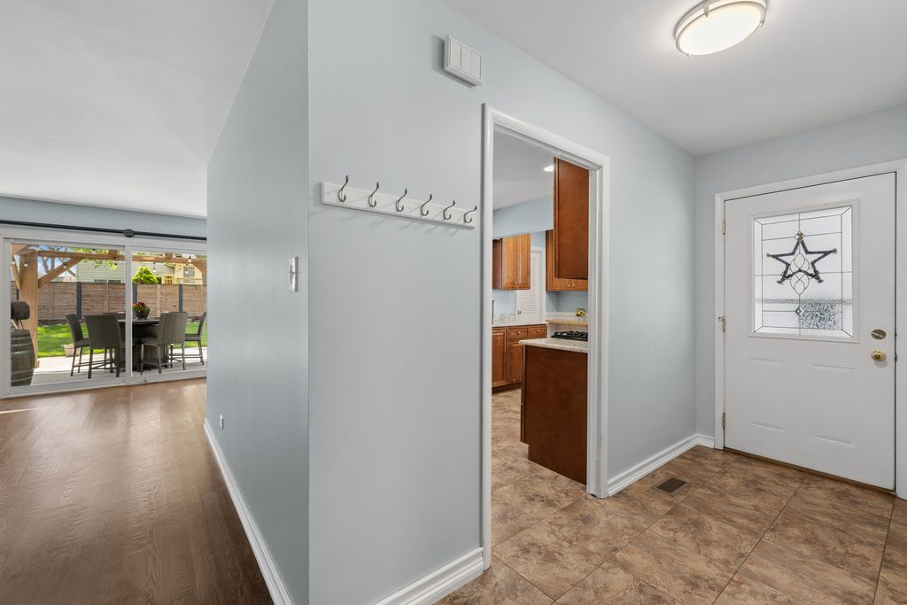 Welcome to this beautifully maintained ranch home offering the perfect blend of comfort, style, and everyday convenience. Inside, you'll find a bright and open floor plan filled with fresh paint and neutral decor throughout. The updated kitchen is a true highlight, featuring granite countertops, 42" cabinetry, can lighting, and updated tile - with an abundance of cabinet and counter space that makes both cooking and entertaining a pleasure. Rich hardwood flooring flows seamlessly through the living room and bedrooms, adding warmth and character to every room. Large sliding glass doors bring the outdoors in, extending your living space to a beautifully landscaped, fenced backyard complete with a spacious patio topped by a generous pergola - ideal for relaxing or hosting gatherings. Additional highlights include a concrete driveway expanded to two-car width, a garage with extra storage space and a dedicated work area, and an outdoor shed for even more flexibility. Ideally located with easy access to parks, shopping, dining, entertainment, expressways, and Schaumburg's District 54 and District 211 schools. This one checks all the boxes - schedule your showing today!