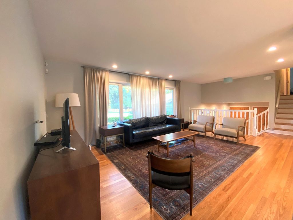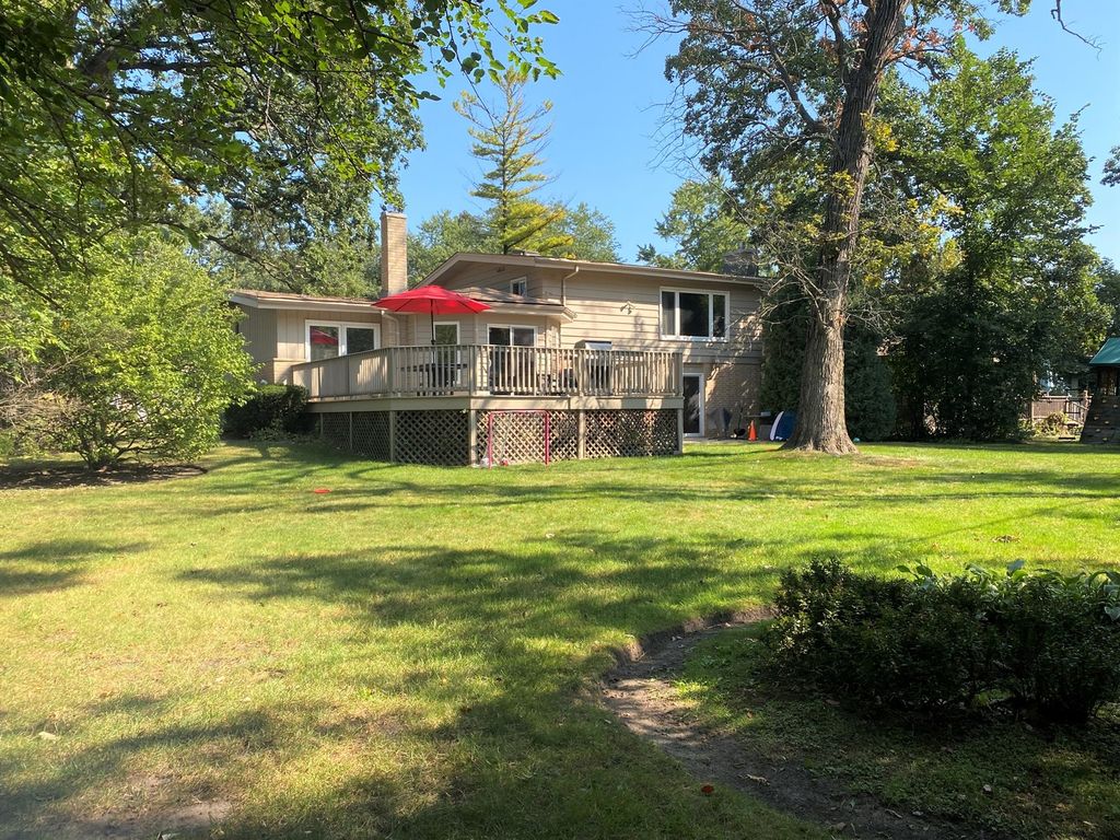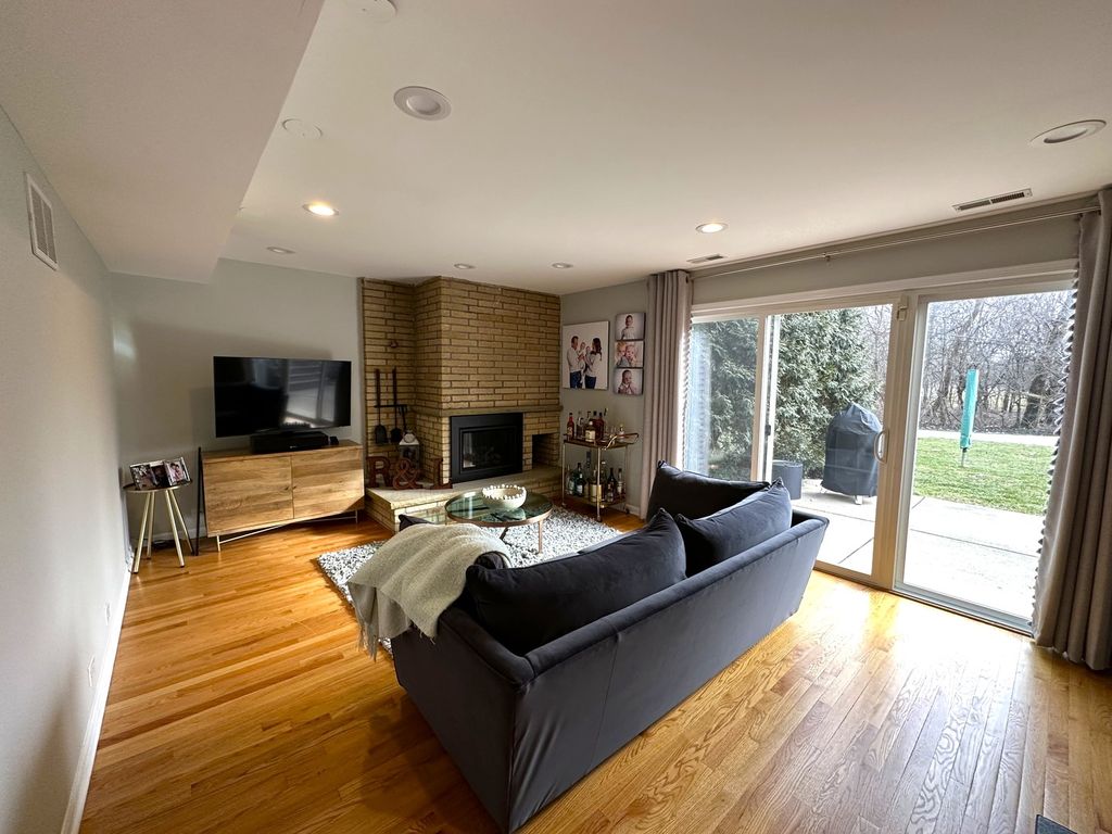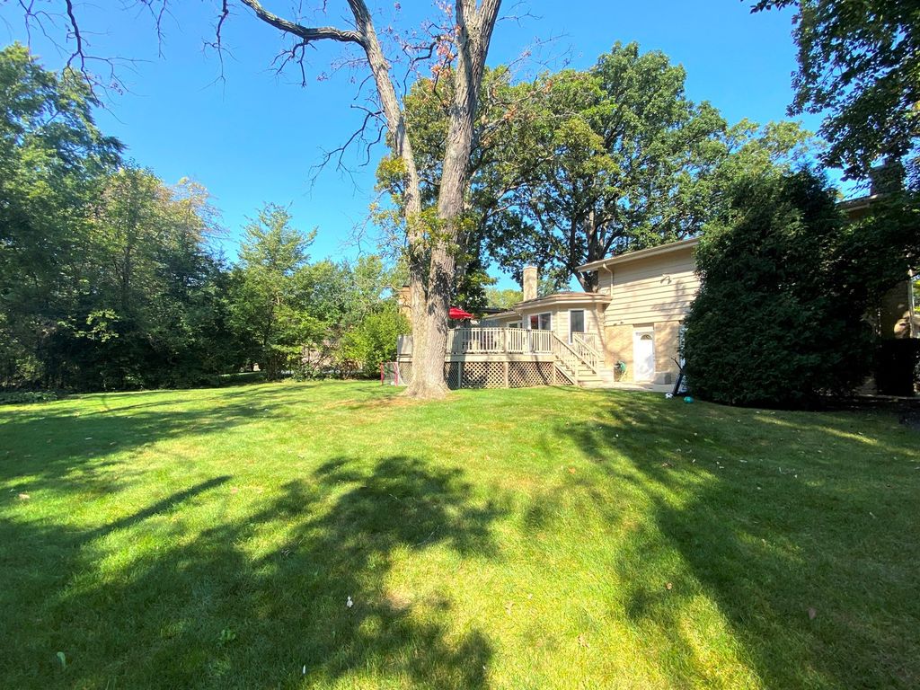 This spacious and beautifully updated Mid-Century Modern tri-level home has it all. Nestled on a quiet, tree-lined street in the Highlands, this 4 bedroom, 3 full bath residence features an expansive yard that backs up to Sleepy Hollow Park. The entry level includes a gracious foyer and a large family room with a cozy gas burning fireplace and sliders to the lush backyard, ideal for relaxing and entertaining. On this level you'll also find a versatile bedroom or office with a huge walk-in closet. They are steps away from an updated full bathroom and convenient laundry room. The main level is designed for both everyday living and effortless entertaining: the living room flows gracefully into the dining room and then to gourmet kitchen with separate eating area. Step out of the kitchen onto the expansive deck overlooking the backyard. On the upper level you'll find a spacious primary suite with a full wall of closets and an updated bath that features a double sink and a shower/tub with body sprays and rain shower. Two additional bedrooms and an updated full bath provide comfortable accommodations for family or guests. Additional highlights include recessed lighting in most rooms, abundant storage throughout, an oversized, two-car attached garage with a wall of closets, a partially finished basement with a rec/play room, and separate utility room with additional storage. Conveniently located just a few blocks from elementary & middle schools, with easy access to Hwy 41, parks, downtown Highwood's vibrant dining and events scene, Lake Michigan, and so much more!